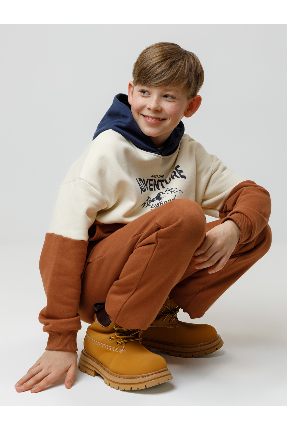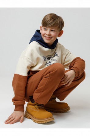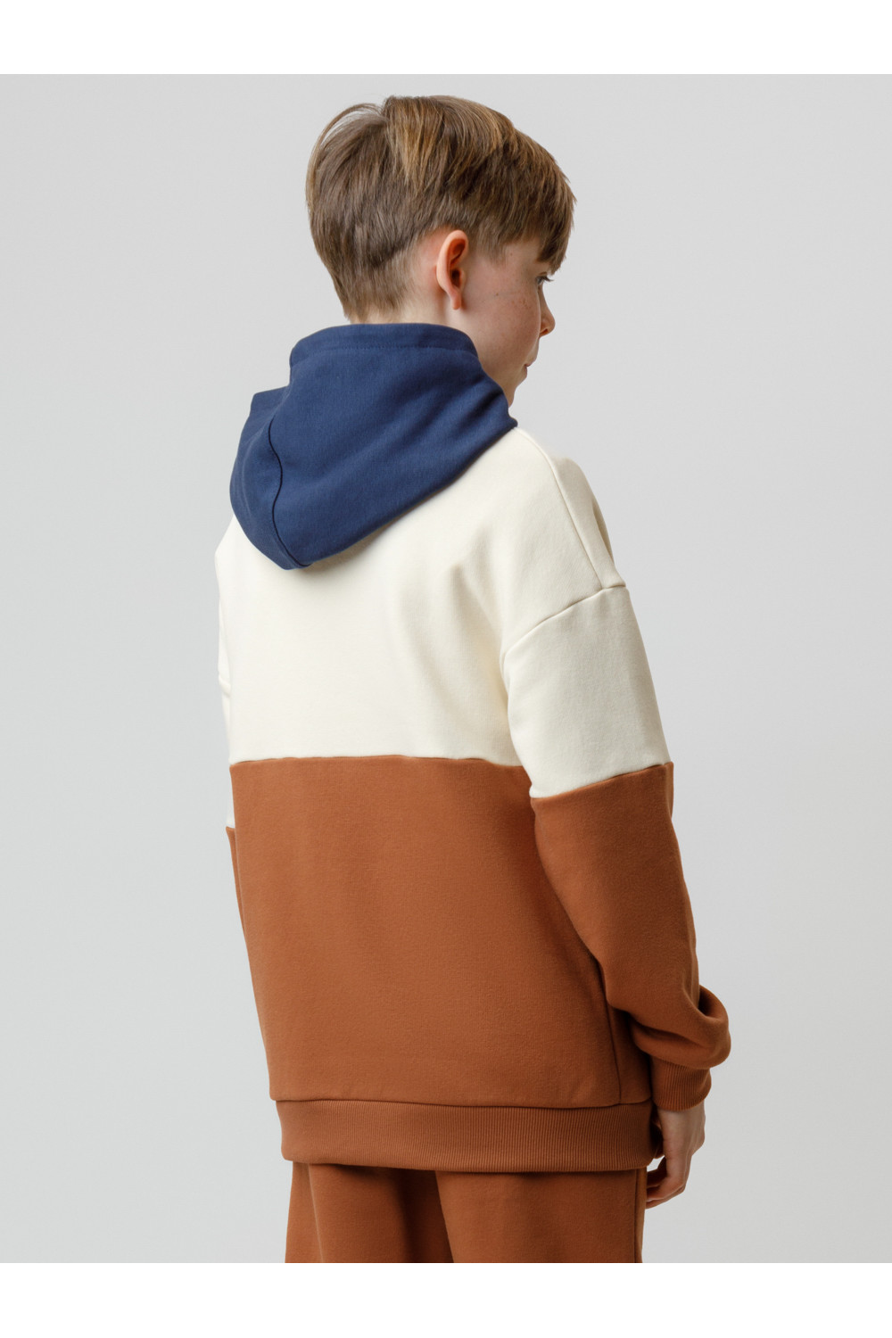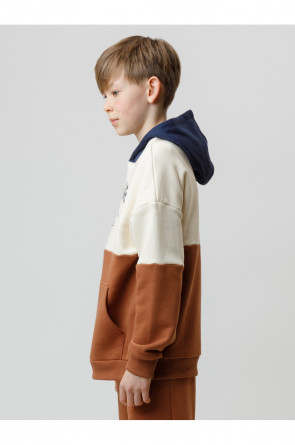 Худи с капюшоном для мальчика из тёплого футера с начёсом. Пояс и манжеты выполнены из мягкого эластичного трикотажа. Спереди удобный и вместительный карман-кенгуру. Худи сохраняет форму и стойкий цвет после многочисленных стирок и идеально подходит на каждый день. Оригинальный принт выполнен из стойких текстильных гипоаллергенных красителей. Все трикотажные полотна производятся в соответствии с нормами швейцарского сертификата ЭкоТекс.