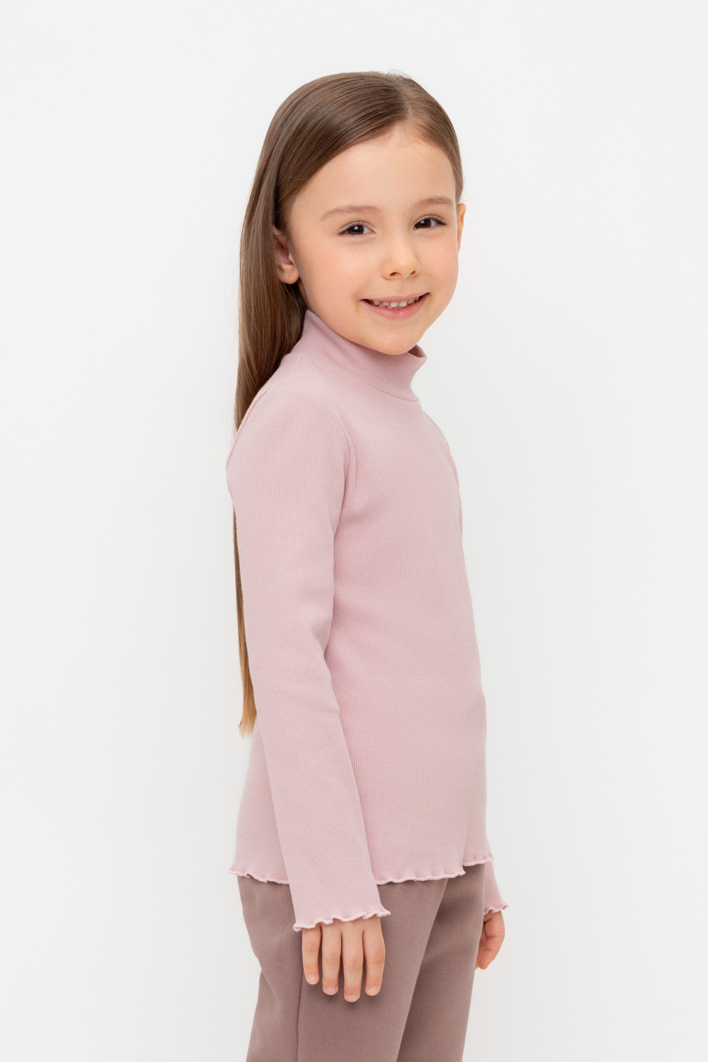 Водолазка для девочки из эластичного трикотажа в рубчик.