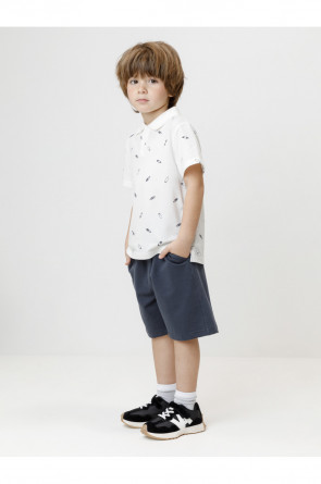 Футболка-поло для мальчика из высококачественного трикотажного полотна пике. У изделия вязаный воротник и застёжка спереди на кнопки. Поло сохраняет цвет и форму после многократных стирок. Все трикотажные полотна производятся в соответствии с нормами швейцарского сертификата ЭкоТекс.