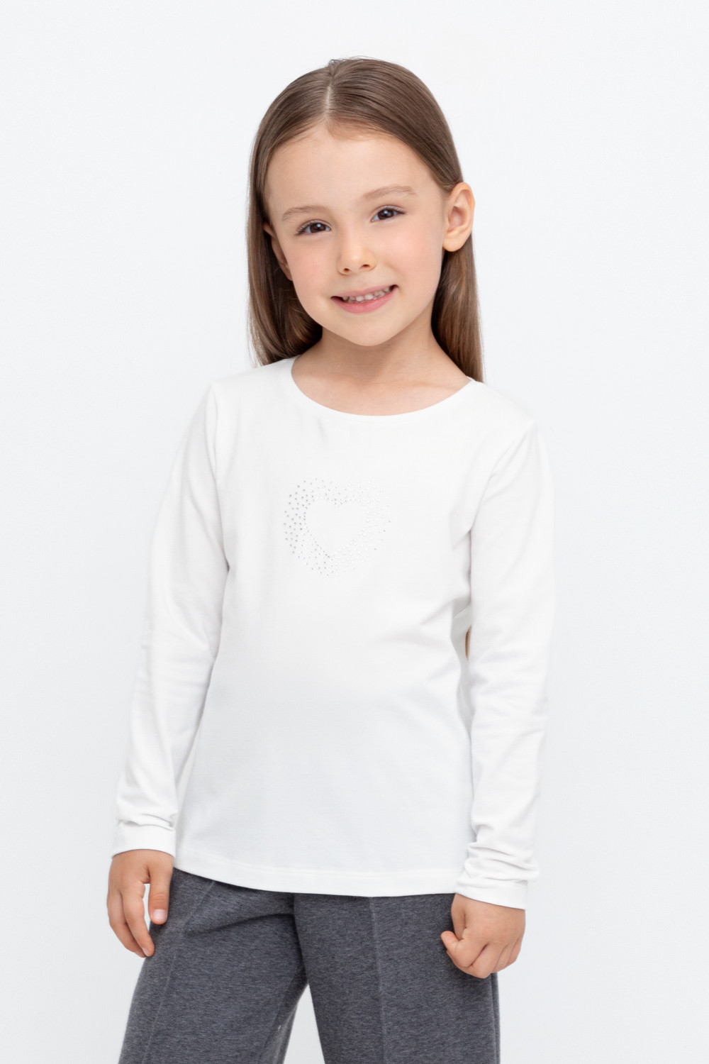 Лонгслив для девочки из высококачественного хлопка. Украшен аппликацией из страз.