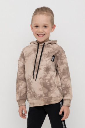 Худи с капюшоном для мальчика из петельчатого футера диагональ. Манжеты и пояс выполнены из эластичного полотна. Спереди удобный карман-кенгуру. Набивка выполнена из стойких текстильных красителей.