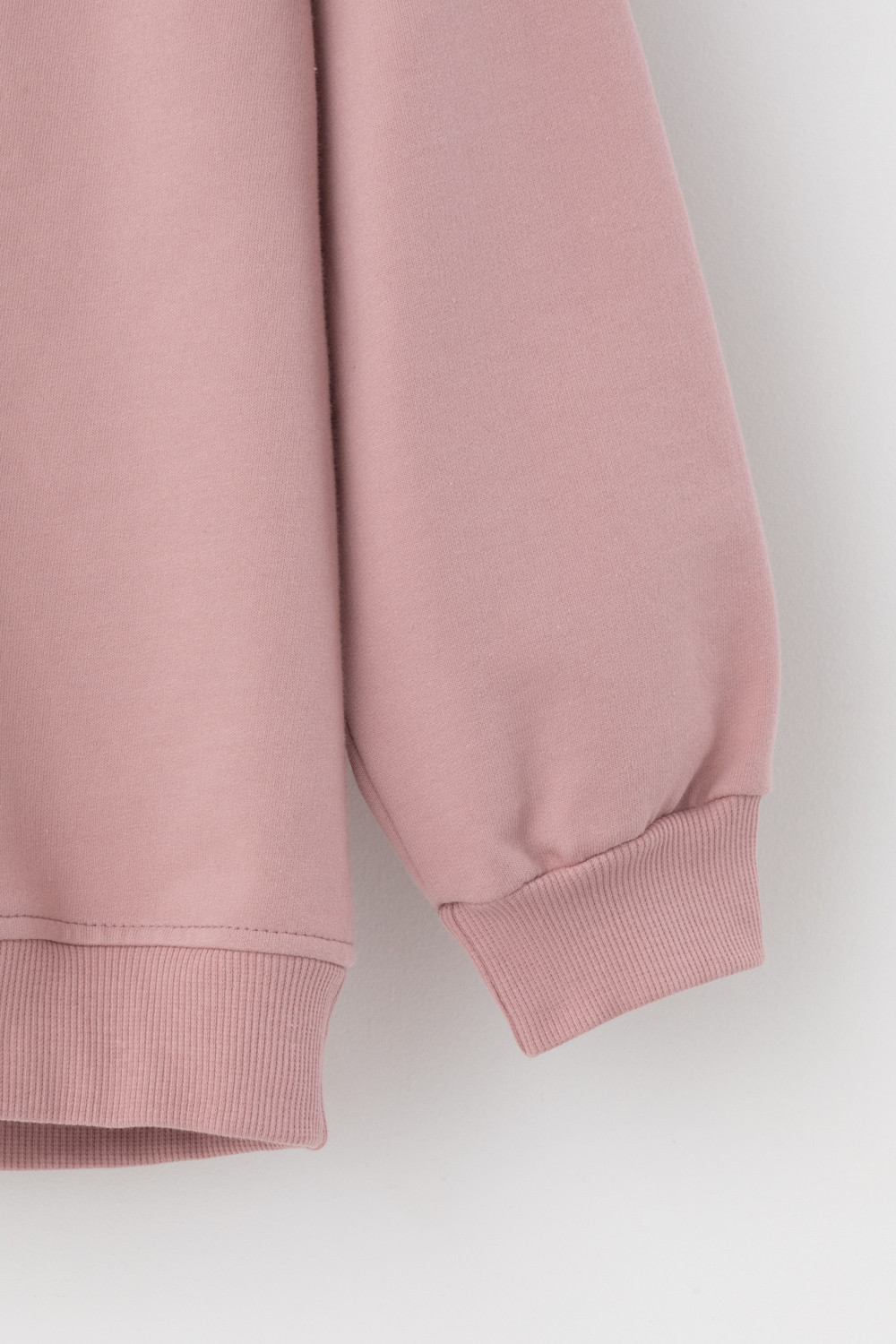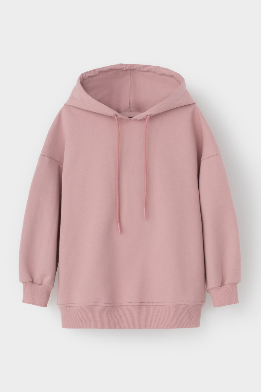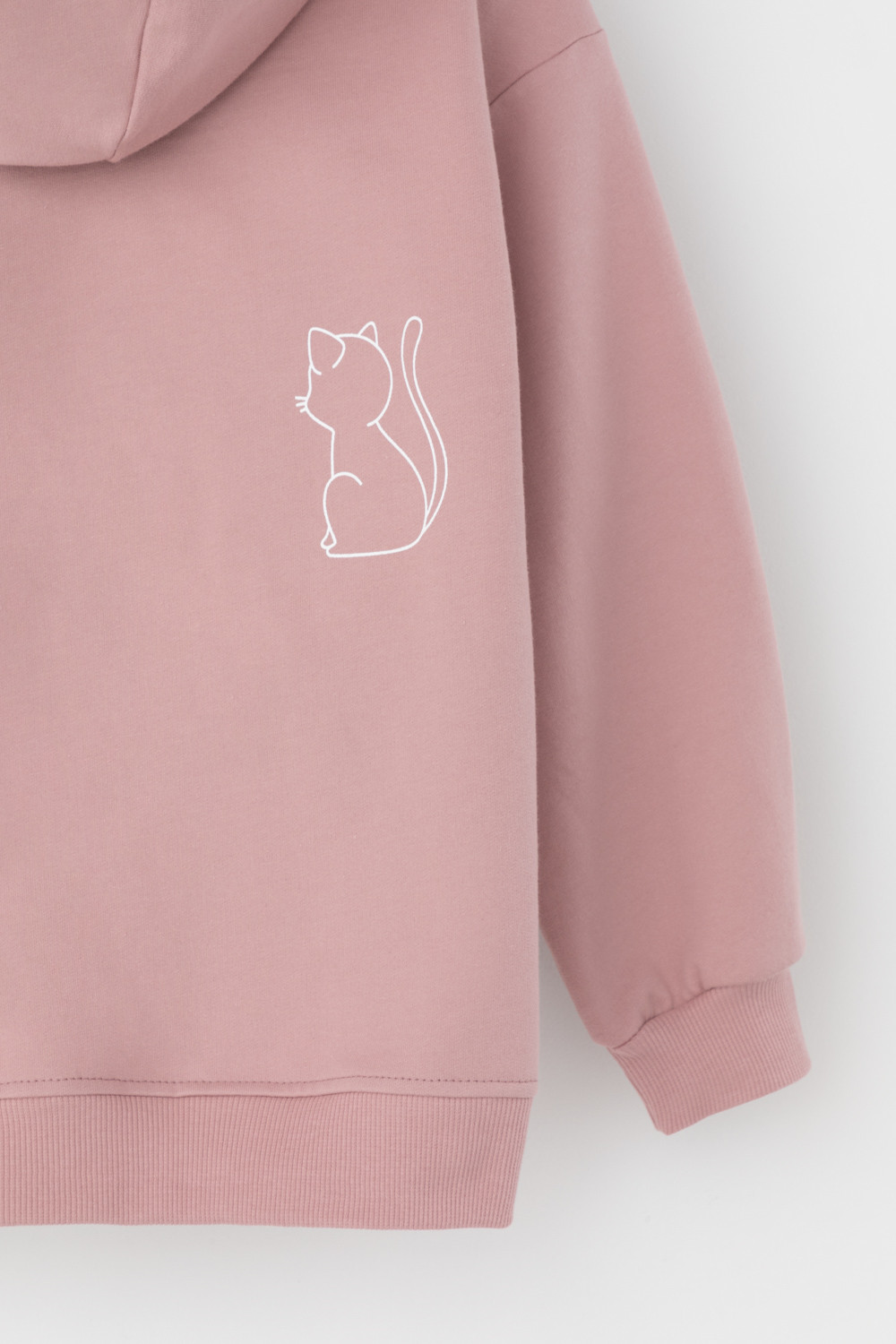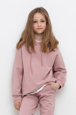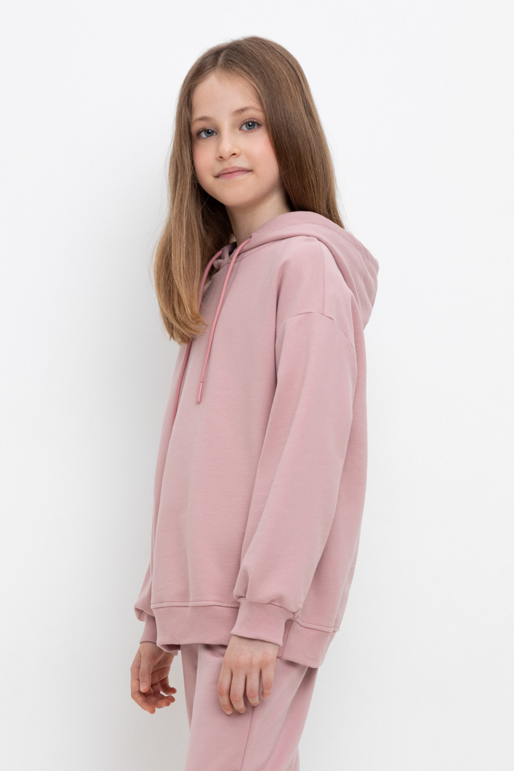 Худи с капюшоном для девочки из футера трехнитки с начесом. Манжеты и пояс выполнены из эластичного полотна. Принт на спинке.