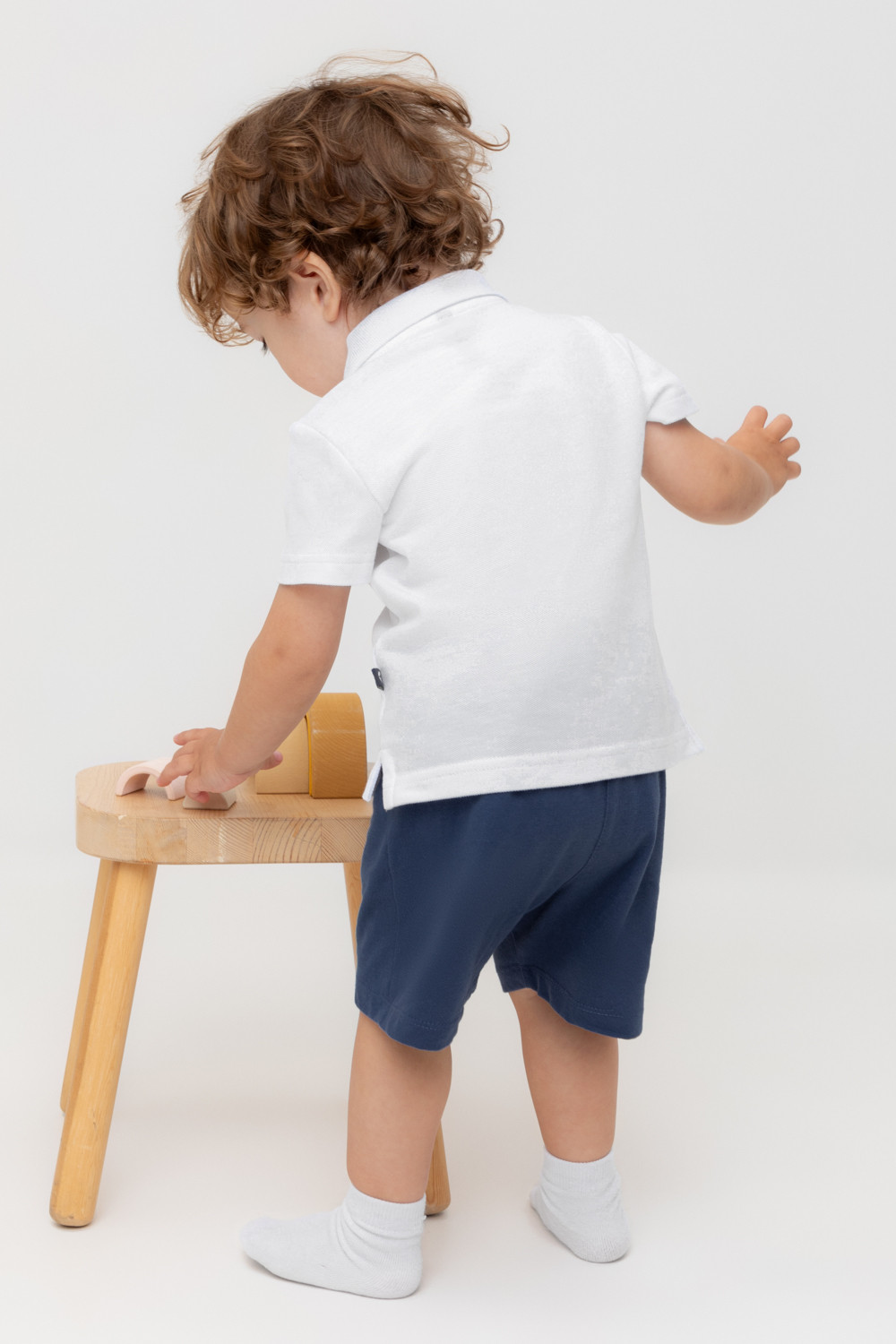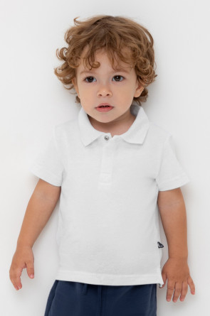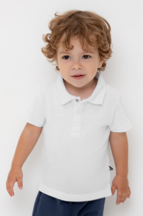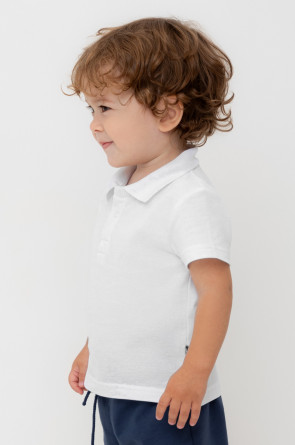 Поло для мальчика. Изготовлено из высококачественного трикотажного полотна пике. У изделия вязаный воротник и застежка спереди на две кнопки.