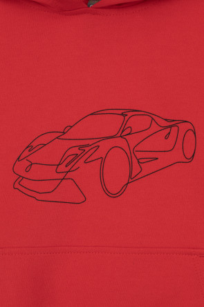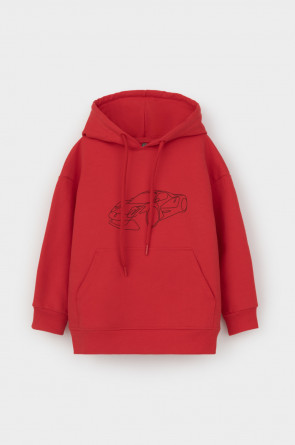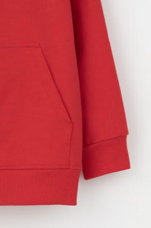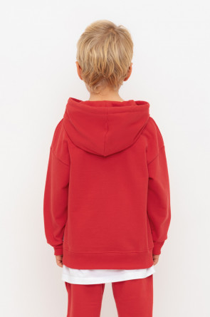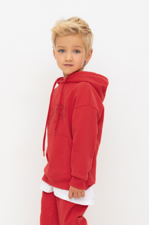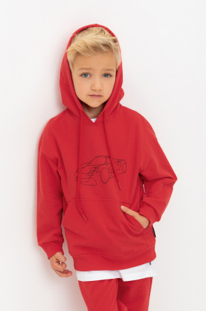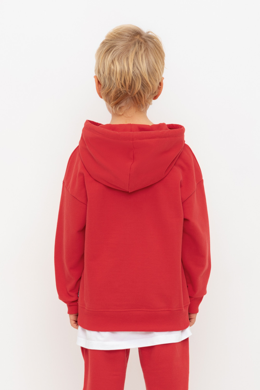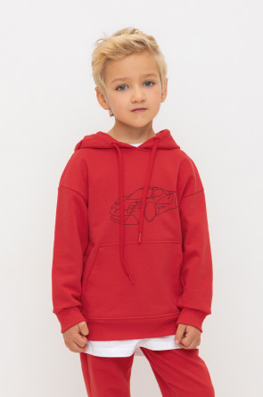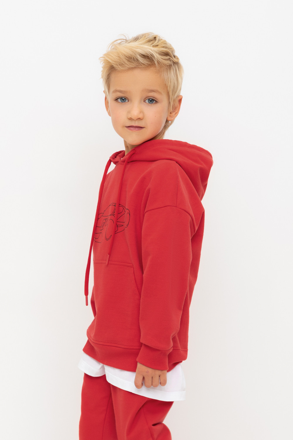 Худи с капюшоном для мальчика из петельчатого футера. Манжеты и пояс выполнены из эластичного полотна. Спереди удобный карман-кенгуру.