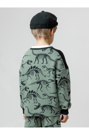 Свитшот для мальчика из высококачественного петельчатого футера. Обтачка горловины и манжеты выполнены из эластичного полотна. Для удобства одевания имеется застёжка на кнопки в размерах 92 и 98. Оригинальный рисунок нанесён с помощью стойких текстильных гипоаллергенных красителей.