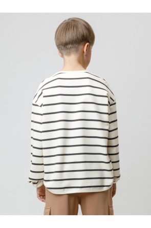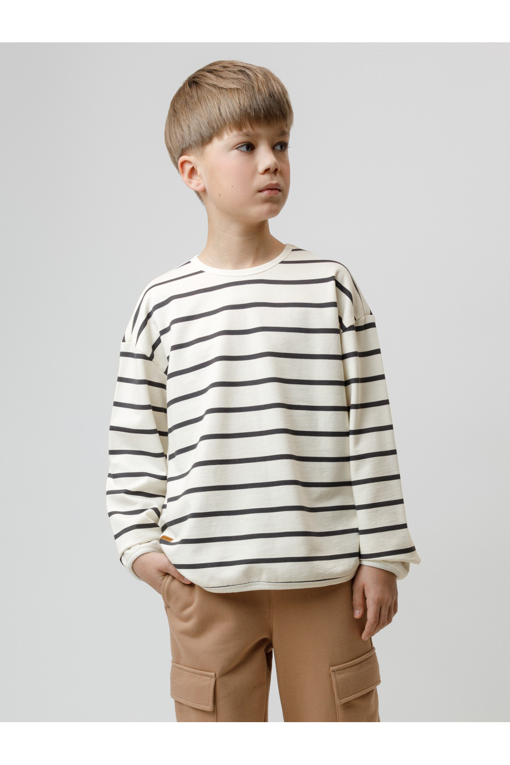 Свитшот для мальчика из мягкого петельчатого футера, произведённого из высококачественного натурального хлопка. Для удобства одевания имеется застёжка на кнопки. Изделие сохраняет цвет и форму после многократных стирок. Все трикотажные полотна производятся в соответствии с нормами швейцарского сертификата ЭкоТекс.