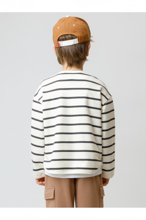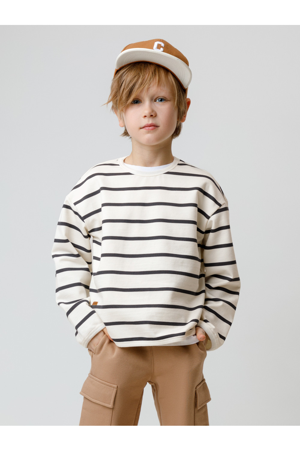 Свитшот для мальчика из мягкого петельчатого футера, произведённого из высококачественного натурального хлопка. Для удобства одевания имеется застёжка на кнопки. Изделие сохраняет цвет и форму после многократных стирок. Все трикотажные полотна производятся в соответствии с нормами швейцарского сертификата ЭкоТекс.