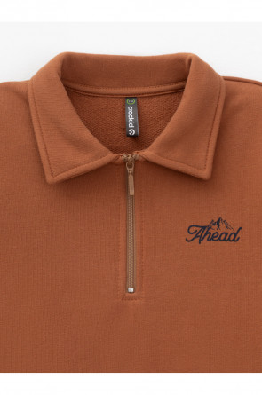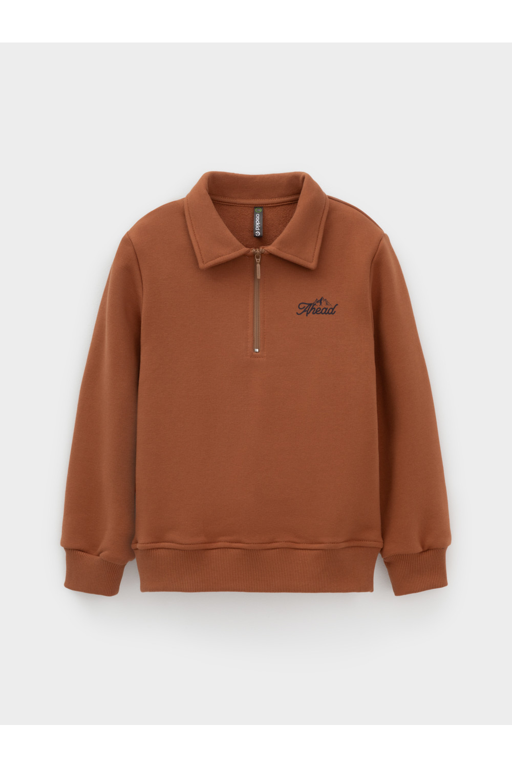Свитшот с воротником для мальчика. Изготовлен из высококачественного петельчатого футера. В составе 80% натурального хлопка и 20% полиэстера, при этом полиэстер ввязан внутрь по особой технологии и не соприкасается с кожей. Манжеты и пояс выполнены из эластичного полотна. На груди короткая застёжка на молнию. Оригинальный принт выполнен из стойких текстильных гипоаллергенных красителей. Изделие сохраняет цвет и форму после многократных стирок.