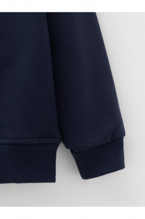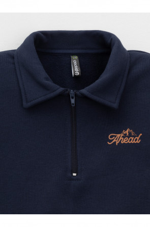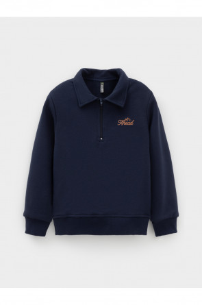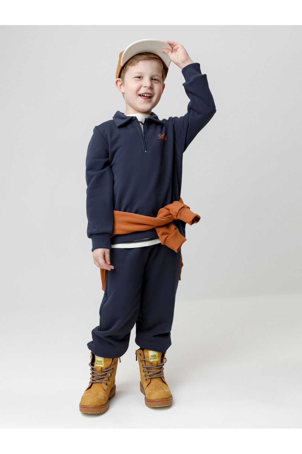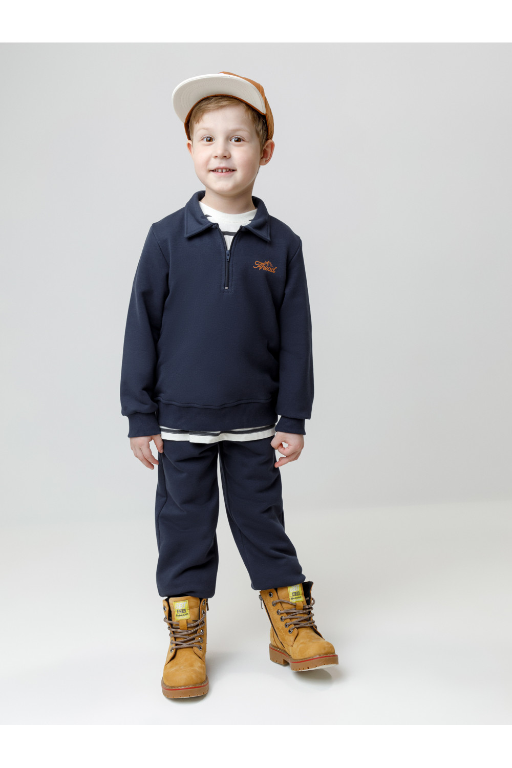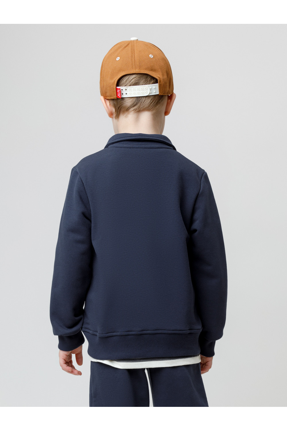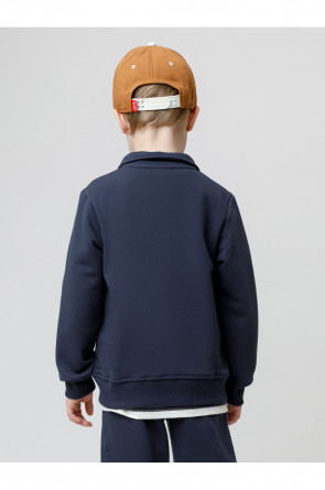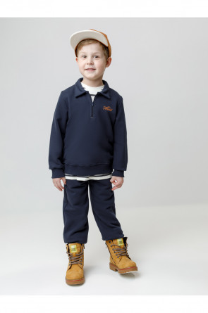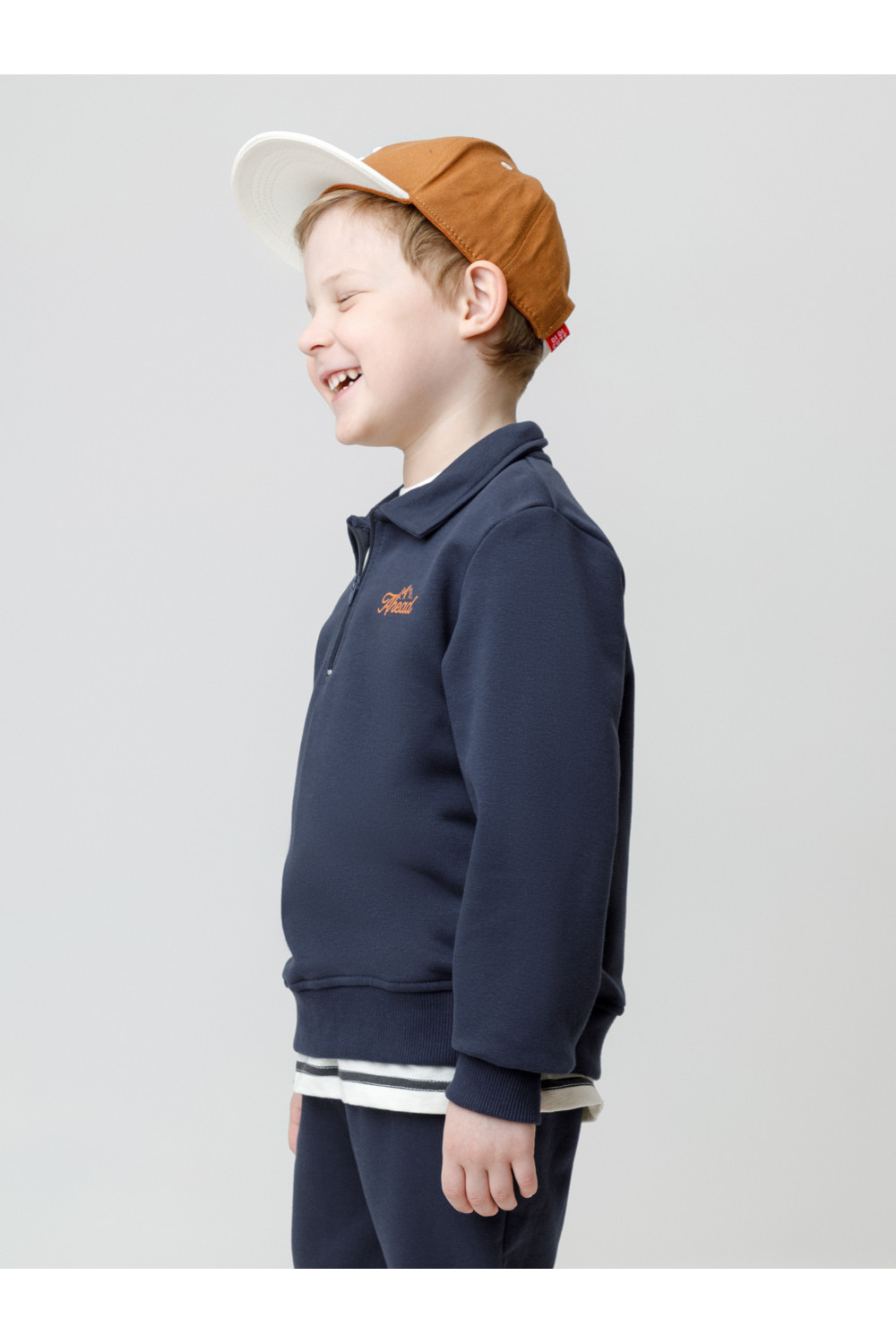 Свитшот с воротником для мальчика. Изготовлен из высококачественного петельчатого футера. В составе 80% натурального хлопка и 20% полиэстера, при этом полиэстер ввязан внутрь по особой технологии и не соприкасается с кожей. Манжеты и пояс выполнены из эластичного полотна. На груди короткая застёжка на молнию. Оригинальный принт выполнен из стойких текстильных гипоаллергенных красителей. Изделие сохраняет цвет и форму после многократных стирок.