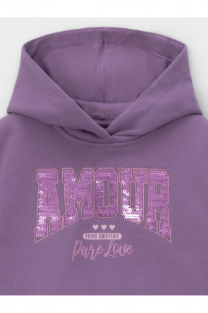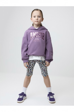 Худи для девочки из мягкого футера с оригинальным рисунком. В составе 80% натурального хлопка и 20% полиэстера, при этом полиэстер ввязан внутрь по особой технологии и не соприкасается с кожей. Манжеты и пояс выполнены из эластичного трикотажа в рубчик. Изделие сохраняет цвет и форму после многократных стирок. Все трикотажные полотна производятся в соответствии с нормами швейцарского сертификата ЭкоТекс.