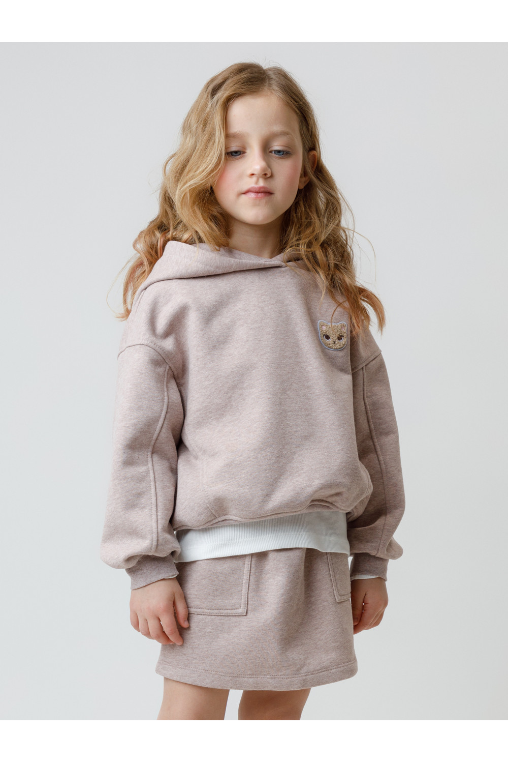 Худи с капюшоном для девочки из мягкого петельчатого футера трёхнитки. Модель оверсайз. Пояс и манжеты выполнены из эластичного трикотажа. Худи сохраняет форму и стойкий цвет после многочисленных стирок и идеально подходит на каждый день. Оригинальный принт выполнен из стойких текстильных гипоаллергенных красителей. Все трикотажные полотна производятся в соответствии с нормами швейцарского сертификата ЭкоТекс.