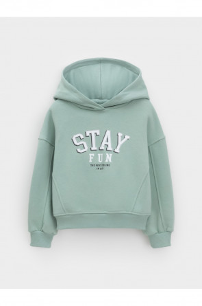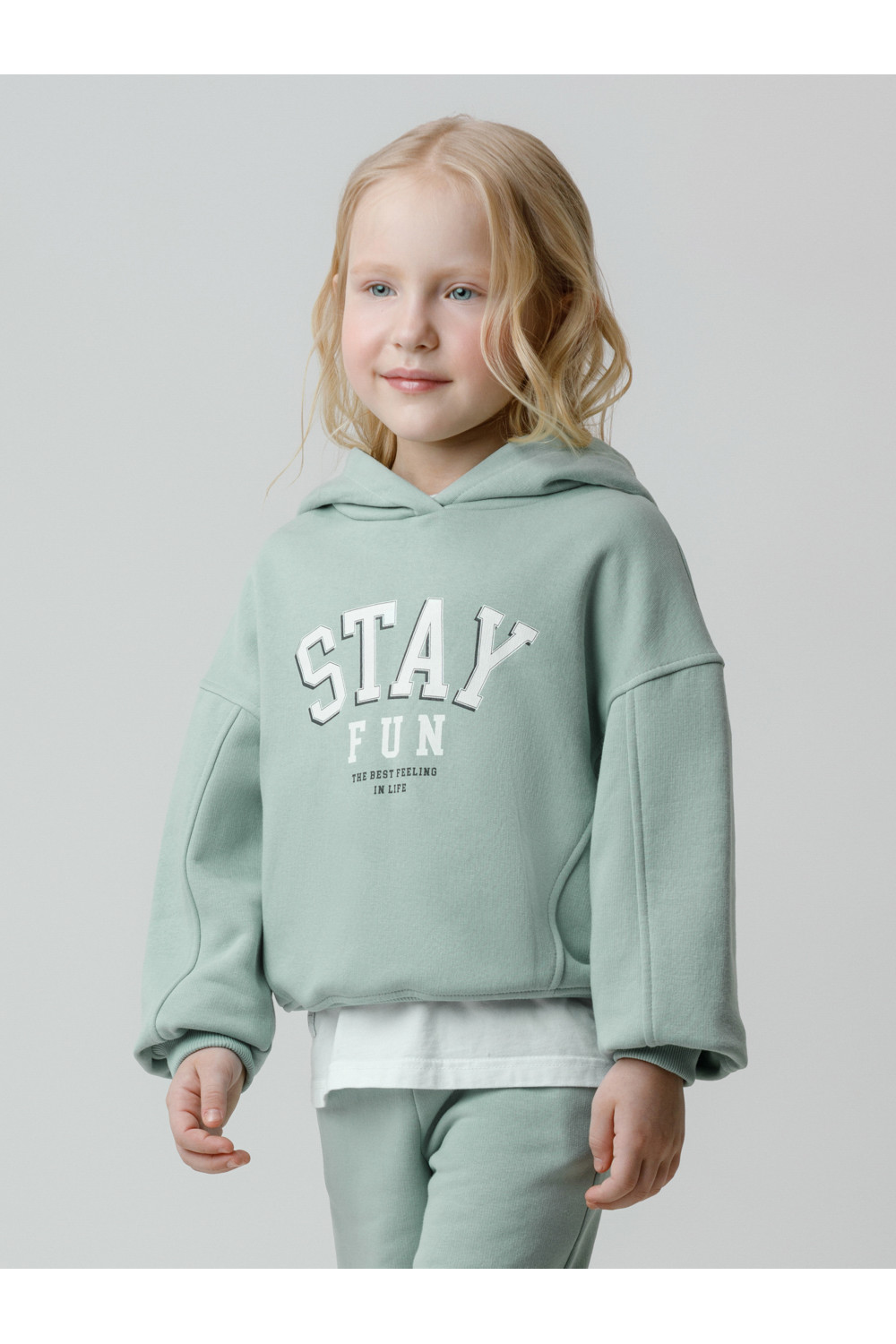 Худи с капюшоном для девочки из тёплого футера с начёсом. Модель оверсайз. Пояс и манжеты выполнены из мягкого эластичного трикотажа. Худи сохраняет форму и стойкий цвет после многочисленных стирок и идеально подходит на каждый день. Оригинальный принт выполнен из стойких текстильных гипоаллергенных красителей. Все трикотажные полотна производятся в соответствии с нормами швейцарского сертификата ЭкоТекс.
