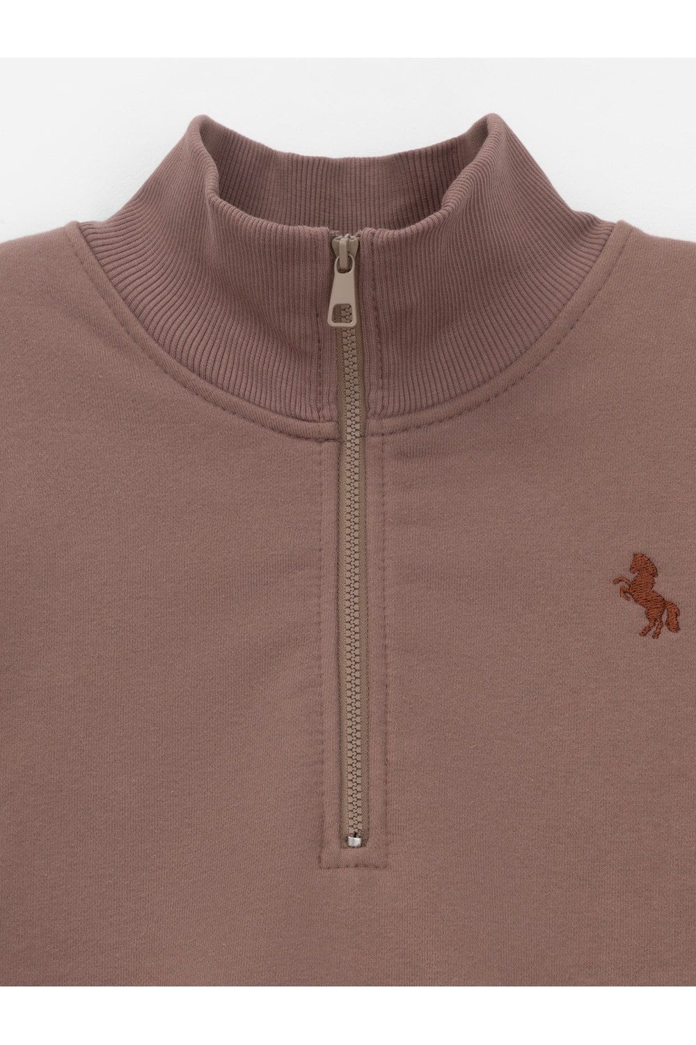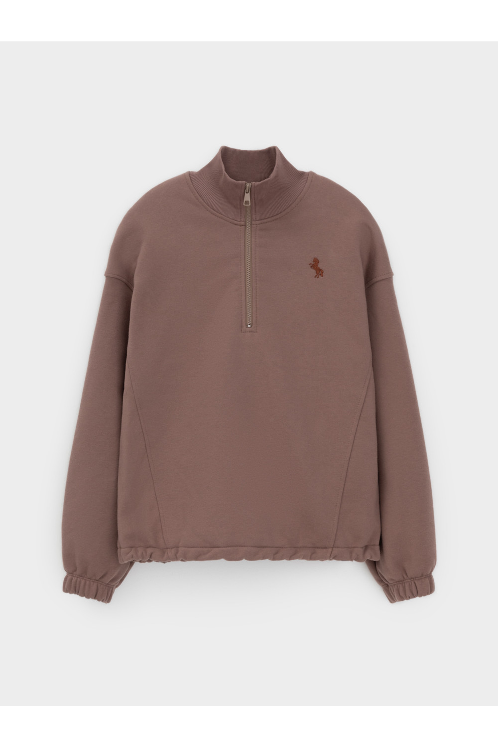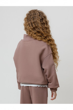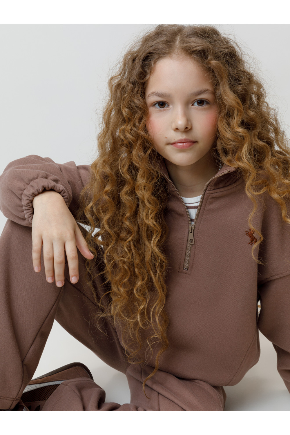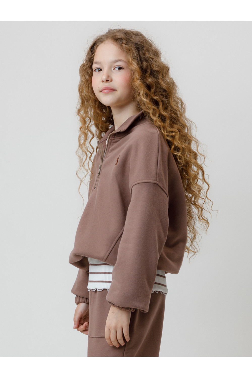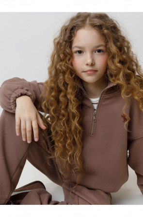 Мягкий свитшот с вышивкой для девочки. Изготовлен из высококачественного футера петли трёхнитки. Спереди застёгивается на короткую металлическую молнию. Воротник выполнен из эластичного полотна в рубчик. Рукава со спущенными плечами и низ изделия собраны на резинку. Свитшот сохраняет форму и стойкий цвет после многочисленных стирок и идеально подходит на каждый день. Все трикотажные полотна производятся в соответствии с нормами швейцарского сертификата ЭкоТекс.