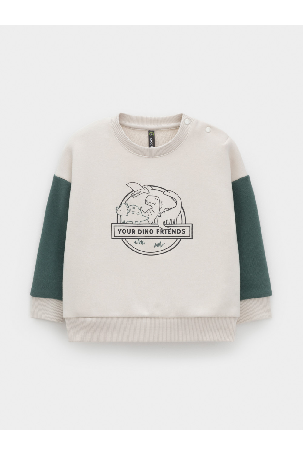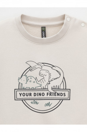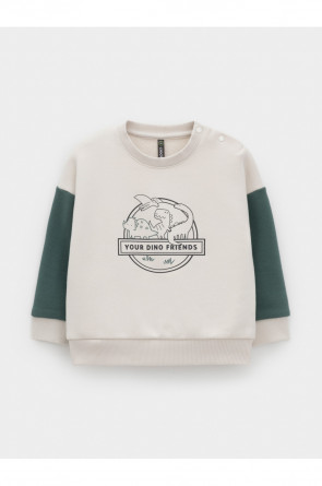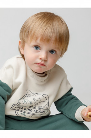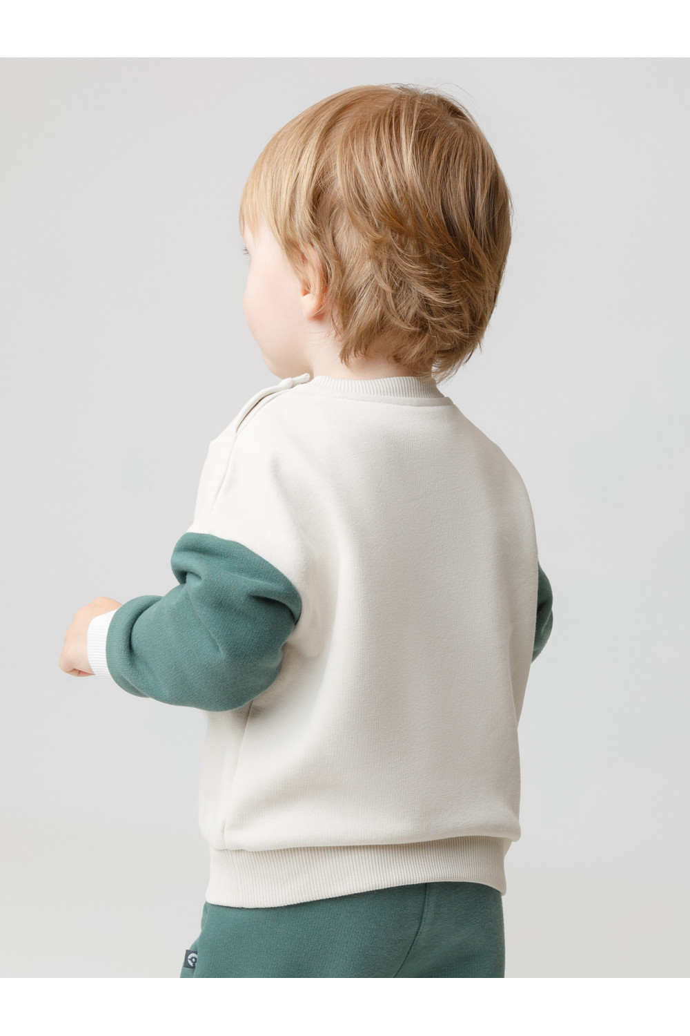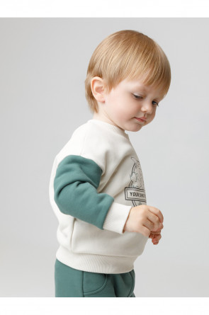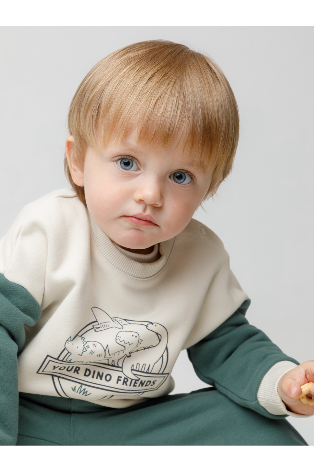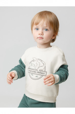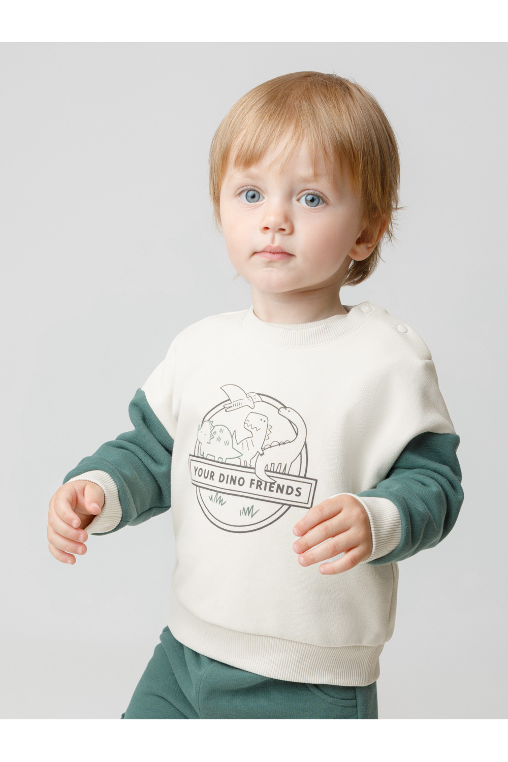 Свитшот для мальчика из высококачественного петельчатого футера. В составе 80% натурального хлопка и 20% полиэстера, при этом полиэстер ввязан внутрь по особой технологии и не соприкасается с кожей. Обтачка горловины, манжеты и пояс выполнены из эластичного полотна. Для удобства одевания имеется застёжка на кнопки. Оригинальный принт нанесён с помощью стойких текстильных гипоаллергенных красителей.