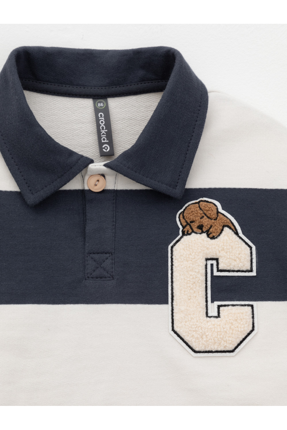 Свитшот с воротником для мальчика. Изготовлен из высококачественного петельчатого футера. Манжеты и пояс выполнены из эластичного полотна. На груди застёжка на пуговицу. Изделие сохраняет цвет и форму после многократных стирок.