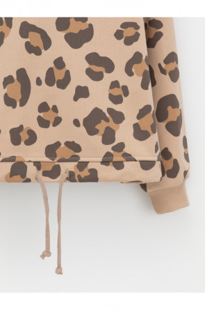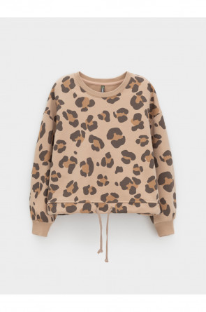 Свитшот для девочки из мягкого петельчатого футера трёхнитки. В составе 80% натурального хлопка и 20% полиэстера, при этом полиэстер ввязан внутрь по особой технологии и не соприкасается с кожей. Застёгивается на кнопки в размерах 92 и 98. Пояс регулируется по ширине с помощью шнурка. На рукавах эластичные манжеты. Оригинальный принт выполнен из стойких текстильных гипоаллергенных красителей. Изделие сохраняет цвет и форму после многократных стирок. Все трикотажные полотна производятся в соответствии с нормами швейцарского сертификата ЭкоТекс.