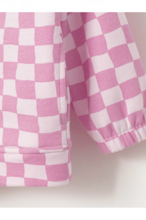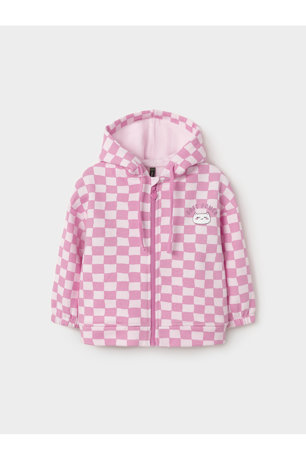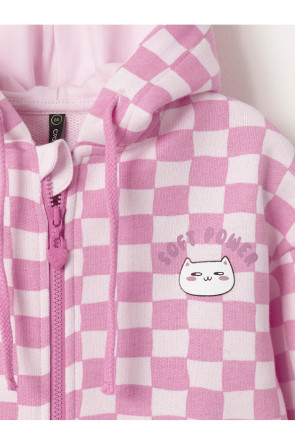 Трикотажная толстовка с капюшоном для девочки. Изготовлена из мягкого набивного футера петли трёхнитки. Застёгивается на молнию с мягкой защитой шеи и подбородка. По бокам два кармана. Манжеты на резинке. По низу пояс из футера. Изделие сохраняет цвет и форму после многократных стирок. Все трикотажные полотна производятся в соответствии с нормами швейцарского сертификата ЭкоТекс.