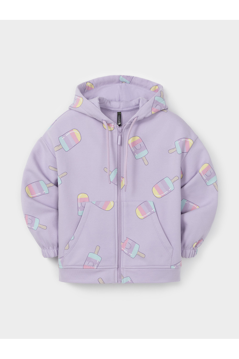 Трикотажная толстовка с капюшоном для девочки. Изготовлена из мягкого петельчатого футера с оригинальным рисунком. В составе 80% натурального хлопка и 20% полиэстера, при этом полиэстер ввязан внутрь по особой технологии и не соприкасается с кожей. Застёгивается на молнию. Манжеты на резинке. По низу пояс из основного полотна. Изделие сохраняет цвет и форму после многократных стирок. Все трикотажные полотна производятся в соответствии с нормами швейцарского сертификата ЭкоТекс.