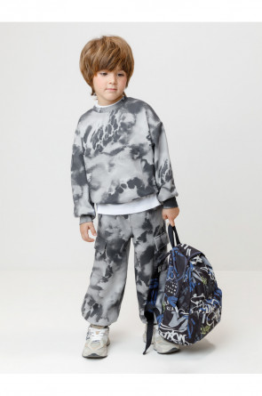 Свитшот для мальчика из высококачественного трикотажного полотна. В составе 80% натурального хлопка и 20% полиэстера, при этом полиэстер ввязан внутрь по особой технологии и не соприкасается с кожей. На рукавах мягкие манжеты. Пояс выполнен из эластичного трикотажа. Оригинальная набивка выполнена из стойких текстильных гипоаллергенных красителей. Изделие сохраняет цвет и форму после многократных стирок. Все трикотажные полотна производятся в соответствии с нормами швейцарского сертификата ЭкоТекс.