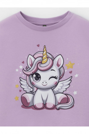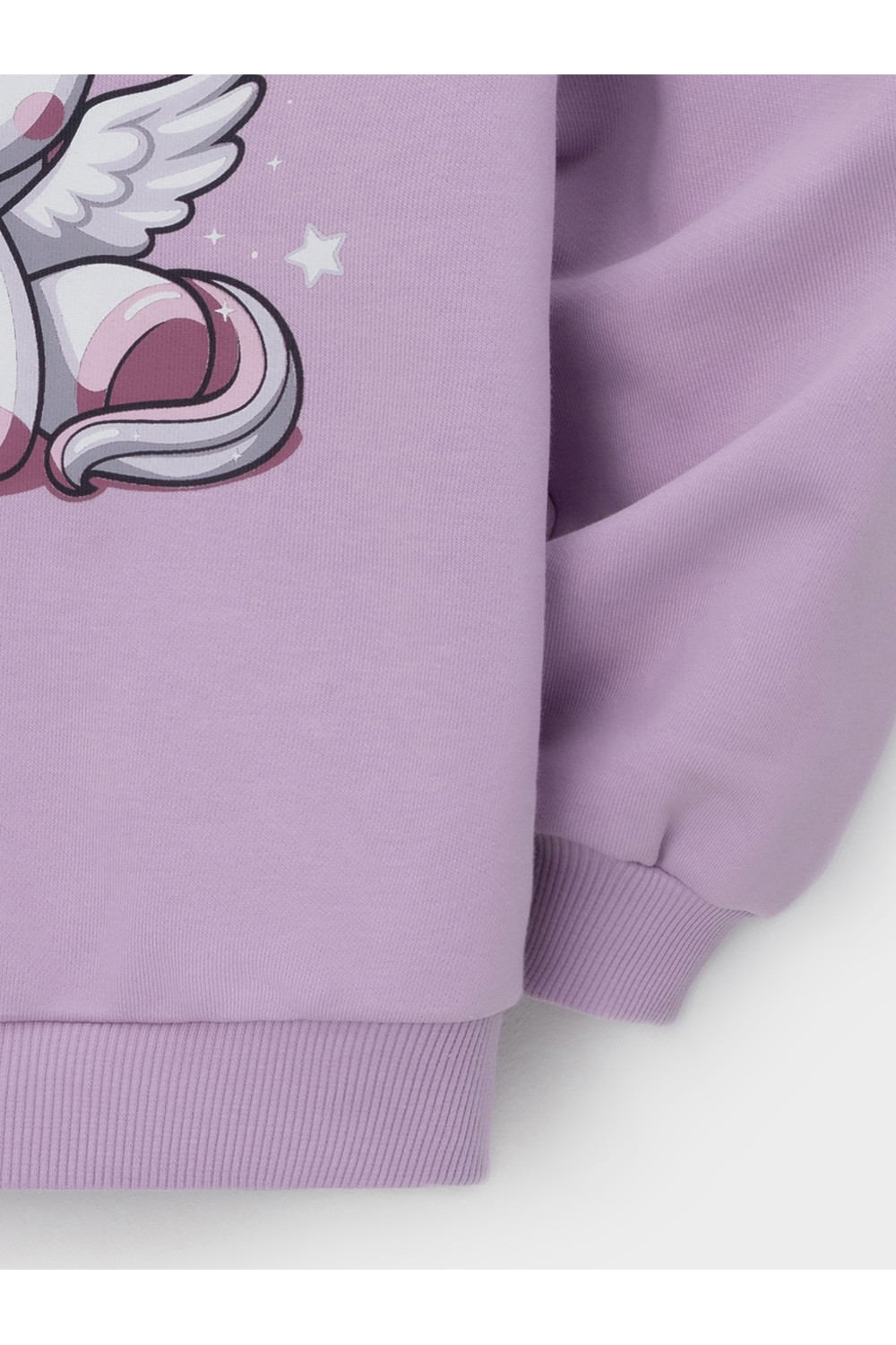 Свитшот для девочки из высококачественного трикотажного полотна. В составе 80% натурального хлопка и 20% полиэстера, при этом полиэстер ввязан внутрь по особой технологии и не соприкасается с кожей. На рукавах мягкие манжеты. Пояс из эластичного трикотажа в рубчик. Оригинальный принт выполнен из стойких текстильных гипоаллергенных красителей. Изделие сохраняет цвет и форму после многократных стирок. Все трикотажные полотна производятся в соответствии с нормами швейцарского сертификата ЭкоТекс.