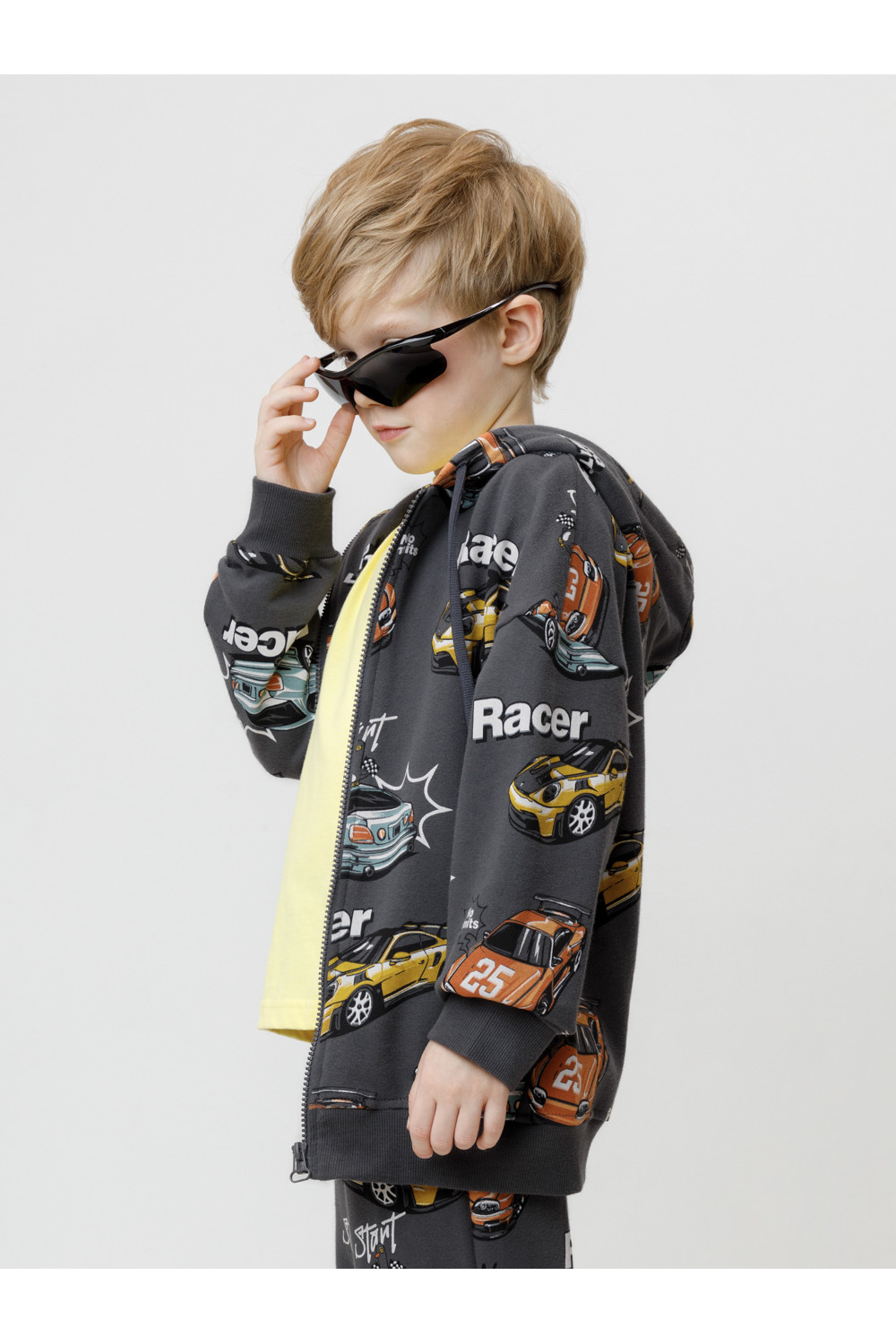 Трикотажная толстовка с капюшоном для мальчика. Изготовлена из мягкого петельчатого футера трёхнитки. Спереди удобная застёжка на молнию. Пояс и манжеты выполнены из эластичного трикотажа. По бокам карманы. Изделие сохраняет цвет и форму после многократных стирок. Все трикотажные полотна производятся в соответствии с нормами швейцарского сертификата ЭкоТекс.