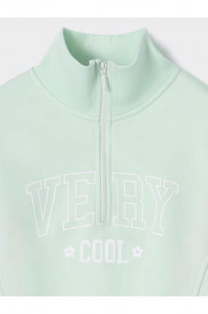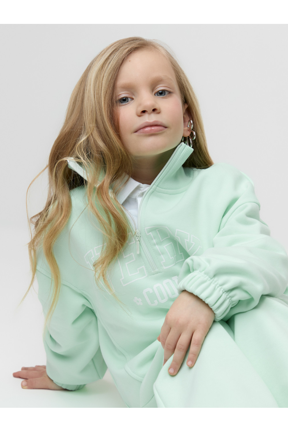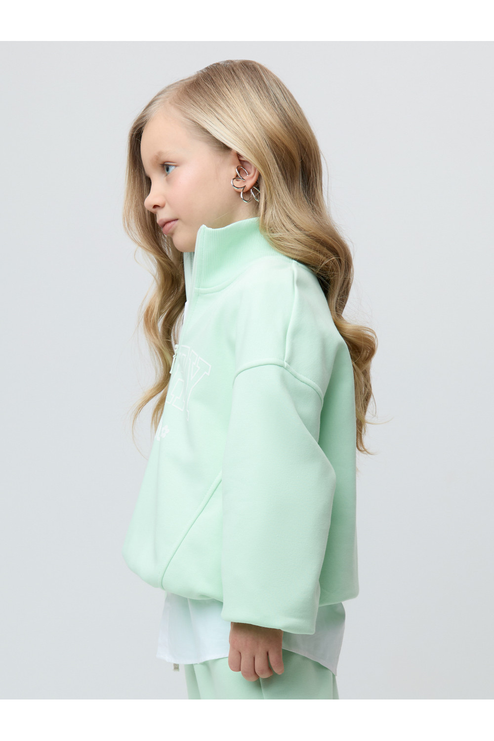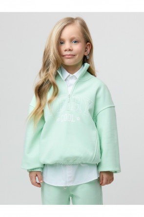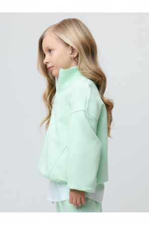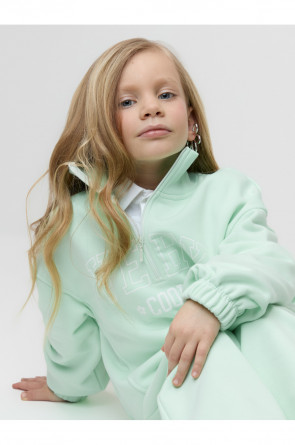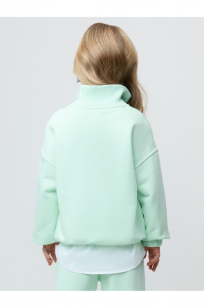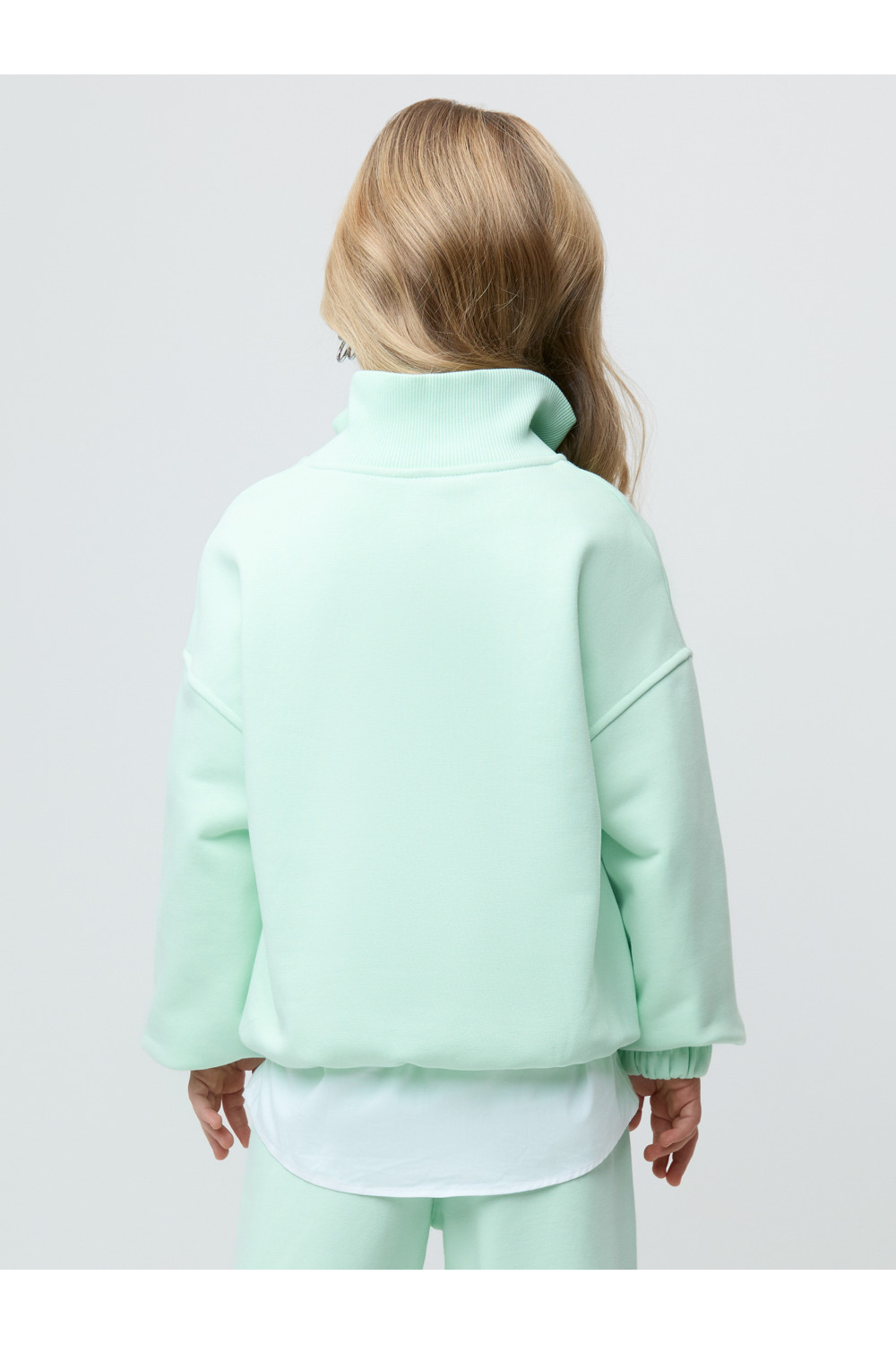 Свитшот для девочки из высококачественного трикотажного полотна. В составе 80% натурального хлопка и 20% полиэстера, при этом полиэстер ввязан внутрь по особой технологии и не соприкасается с кожей. Высокий воротник застёгивается на короткую молнию. Рукава и пояс на резинке. Изделие сохраняет цвет и форму после многократных стирок. Все трикотажные полотна производятся в соответствии с нормами швейцарского сертификата ЭкоТекс.