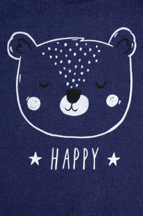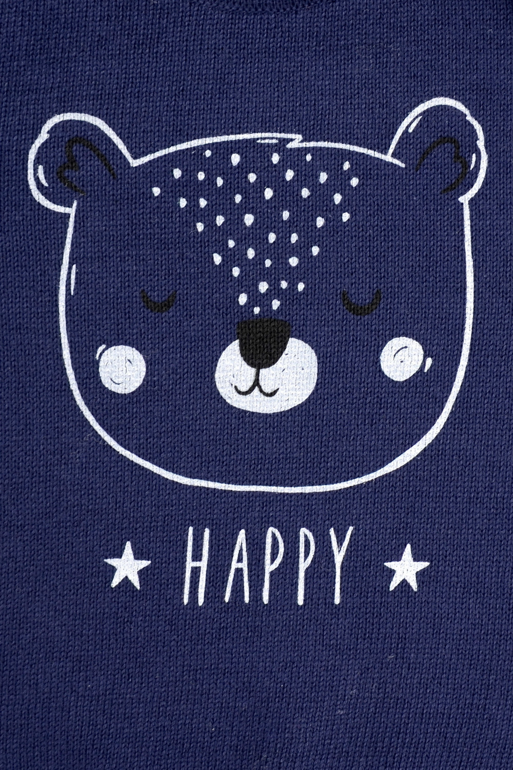 Вязаный джемпер с втачными рукавами. Украшен изображением мишки. Связан из хлопковой пряжи. На рукавах эластичные манжеты. Внизу мягкий пояс. Застёгивается на пуговицу.