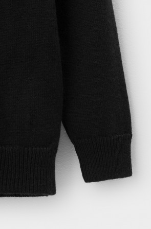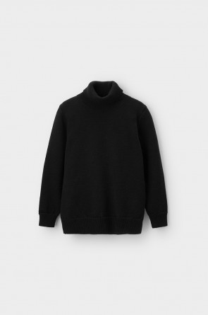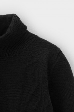 Вязаный джемпер для мальчика из полушерстяной пряжи. Высокий воротник с отворотом хорошо защищает от холода. Длинные рукава с манжетами. Внизу эластичный пояс. Изделие сохраняет форму и стойкий цвет после многочисленных стирок.