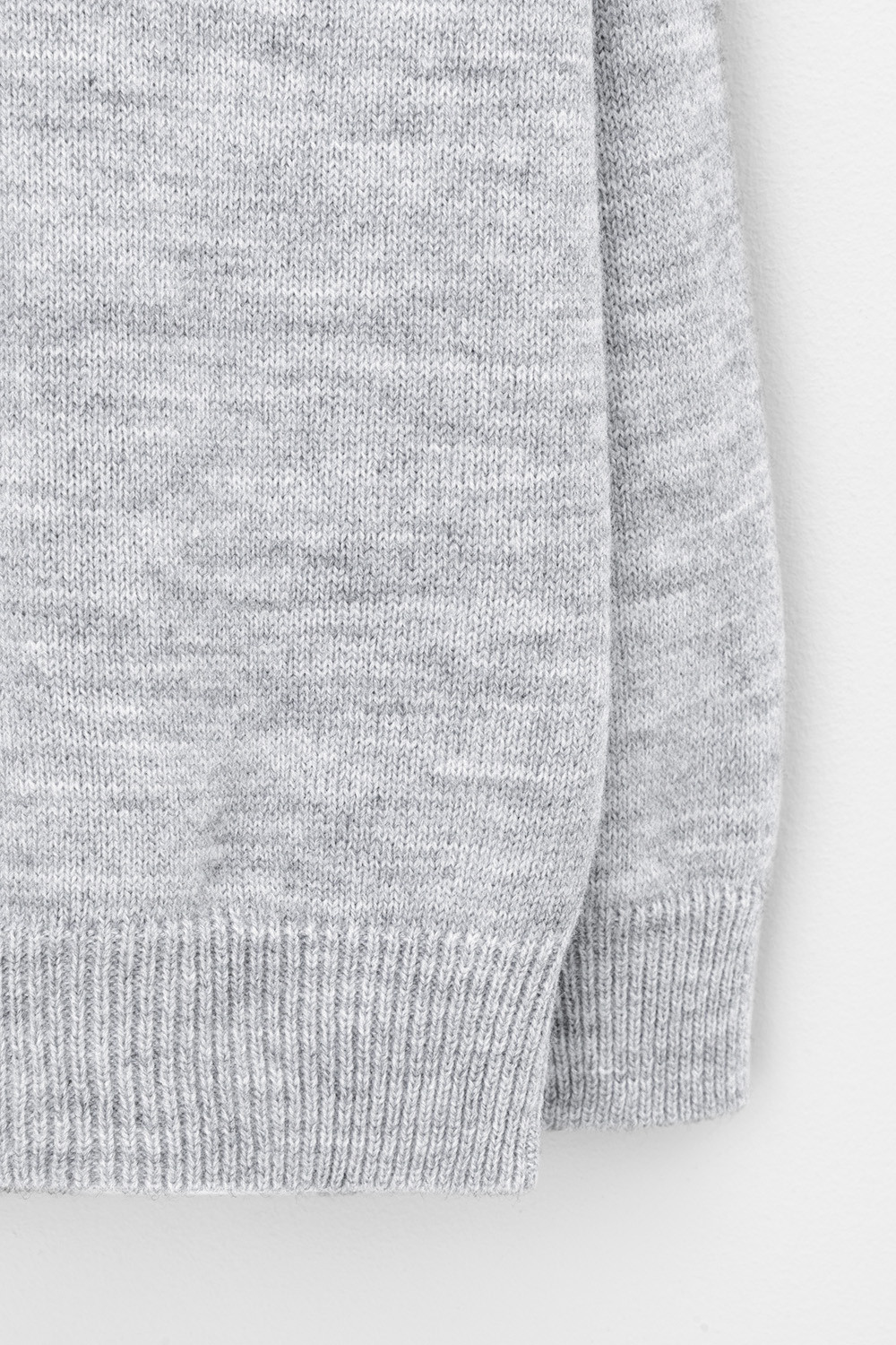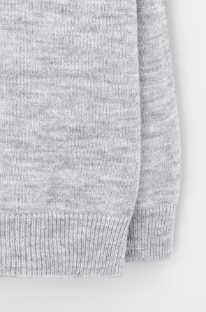 Вязаный джемпер для мальчика из полушерстяной пряжи. Высокий воротник с отворотом хорошо защищает от холода. Длинные рукава с манжетами. Внизу эластичный пояс. Изделие сохраняет форму и стойкий цвет после многочисленных стирок.
