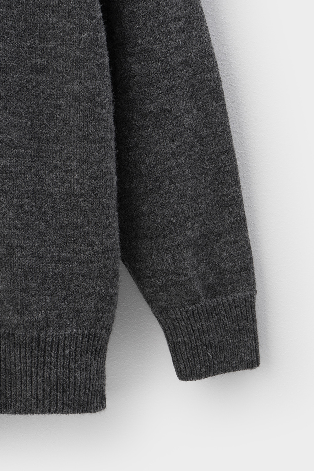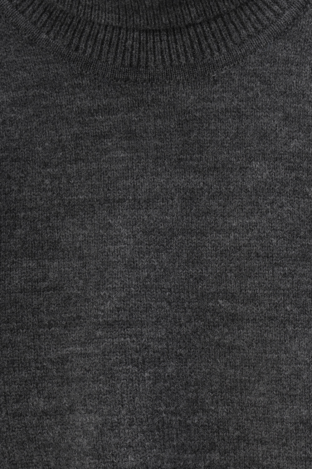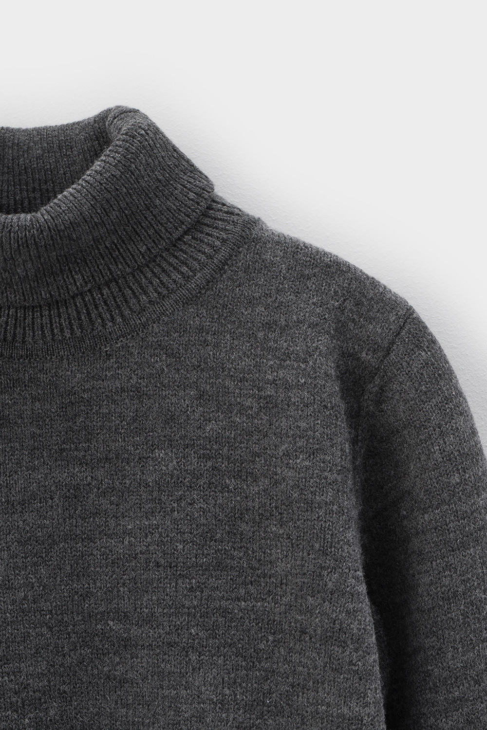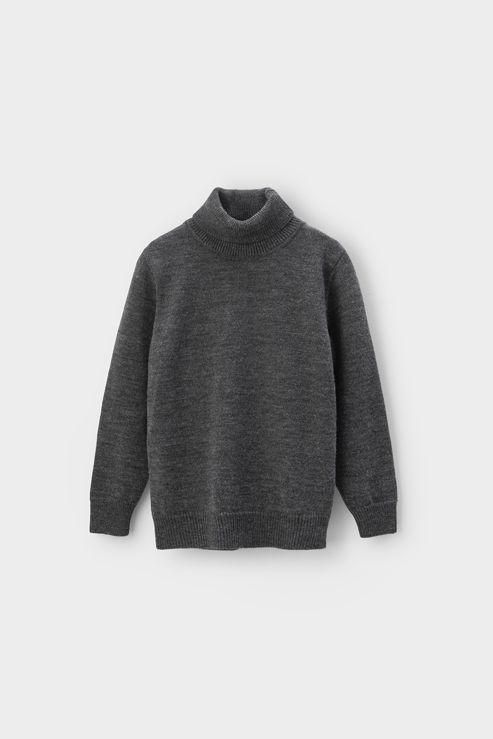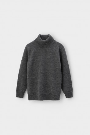 Вязаный джемпер для мальчика из мягкой полушерстяной пряжи. Высокий воротник с отворотом хорошо защищает от холода. Длинные рукава с манжетами. Внизу эластичный пояс. Изделие сохраняет форму и стойкий цвет после многочисленных стирок.