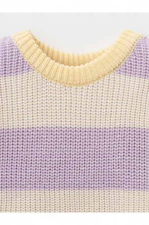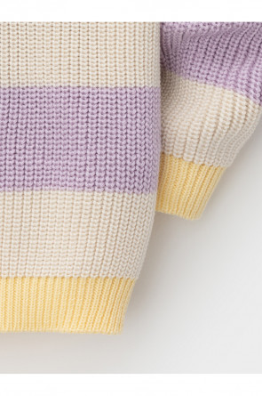 Вязаный джемпер объёмный. Изготовлен из мягкой хлопковой пряжи с добавлением акрила. Длинные рукава с манжетами. Внизу эластичный пояс. Изделие сохраняет форму и стойкий цвет после многочисленных стирок.