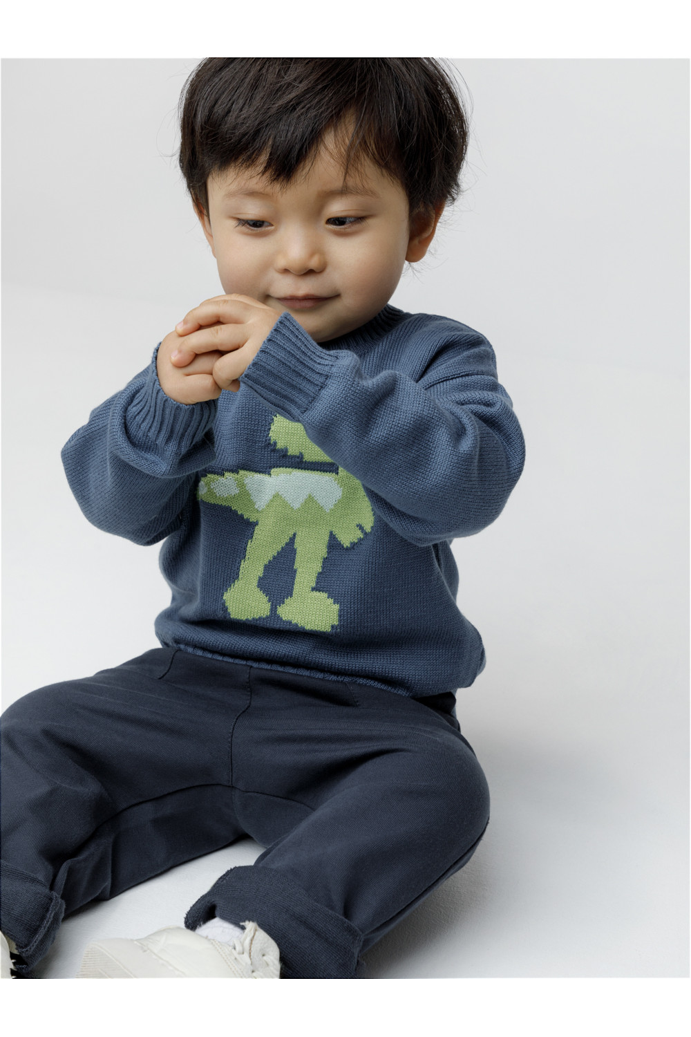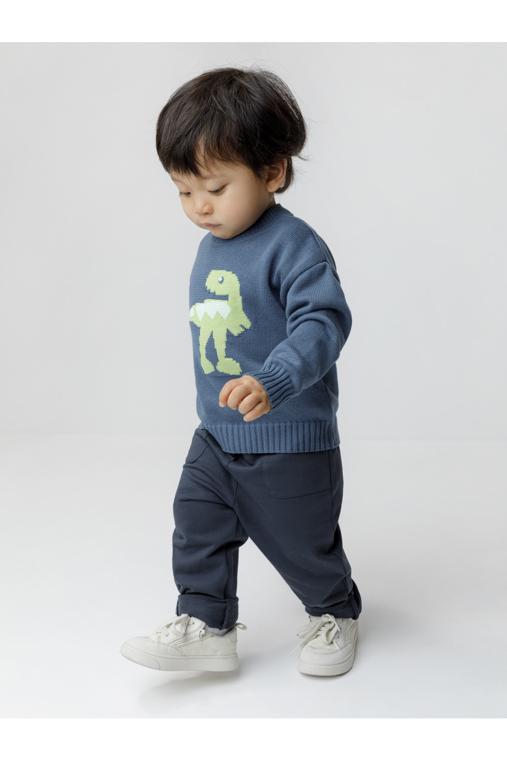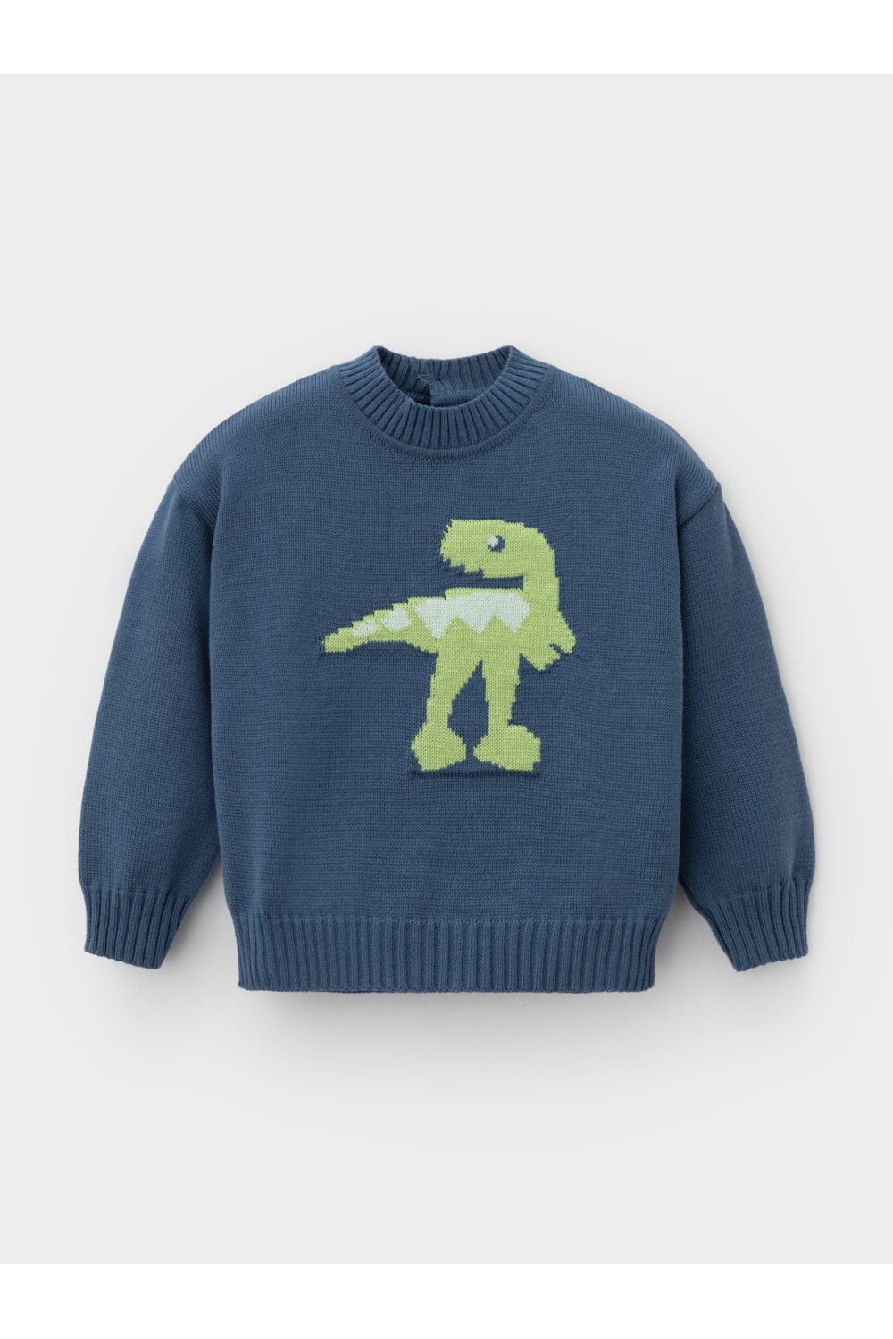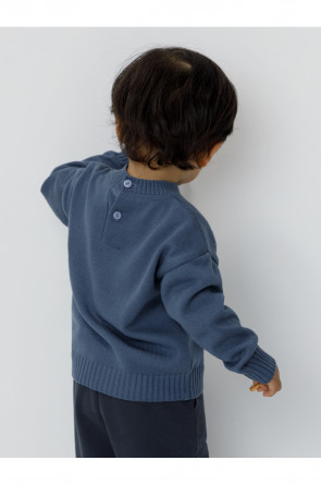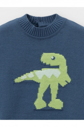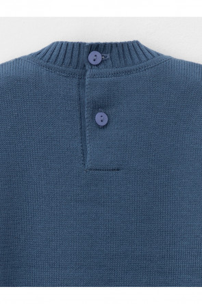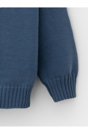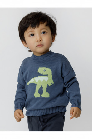 Вязаный джемпер с рисунком для мальчика. Изготовлен из мягкой хлопковой пряжи с добавлением акрила. Длинные рукава с манжетами. Внизу эластичный пояс. На спинке застёжка на пуговицу. Изделие сохраняет форму и стойкий цвет после многочисленных стирок.
