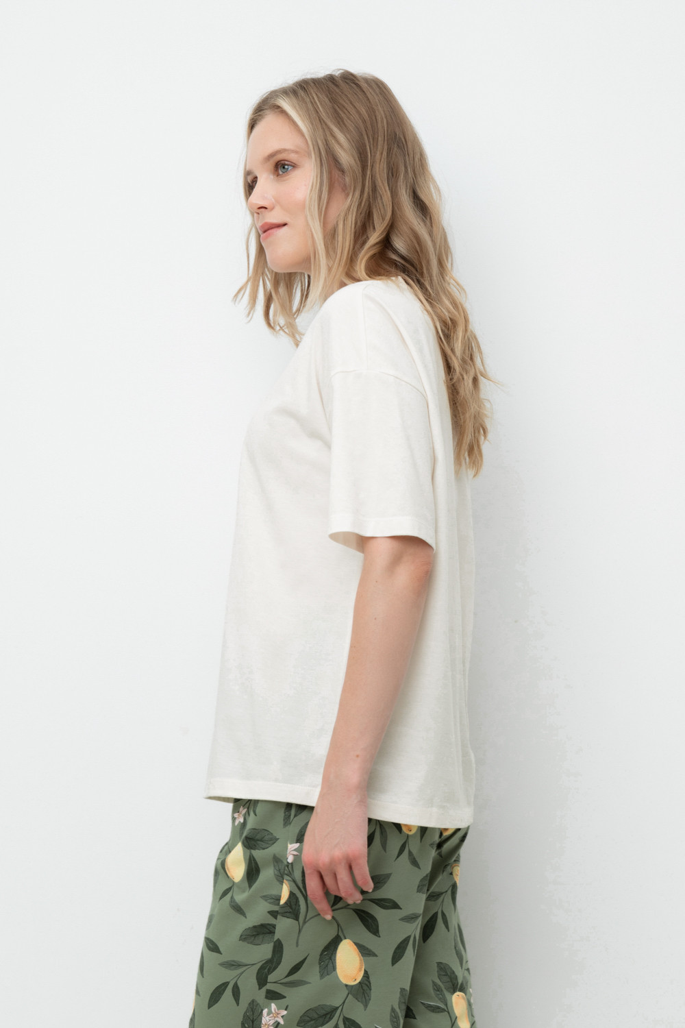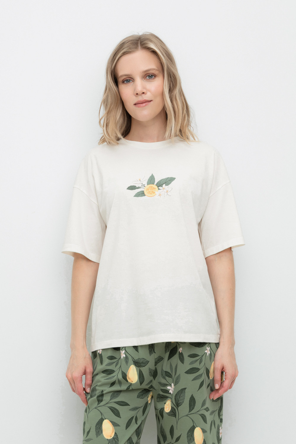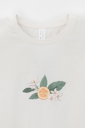 Удлиненная футболка из 100% натурального хлопка. Свободные рукава со спущенной линией плеча создают объём и свободный силуэт. Принт изготовлен из стойких текстильных красителей.