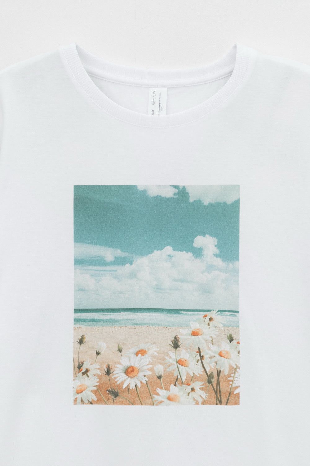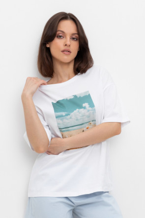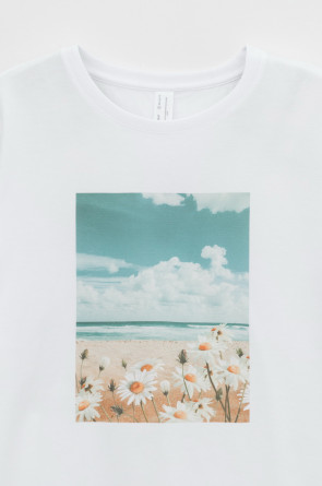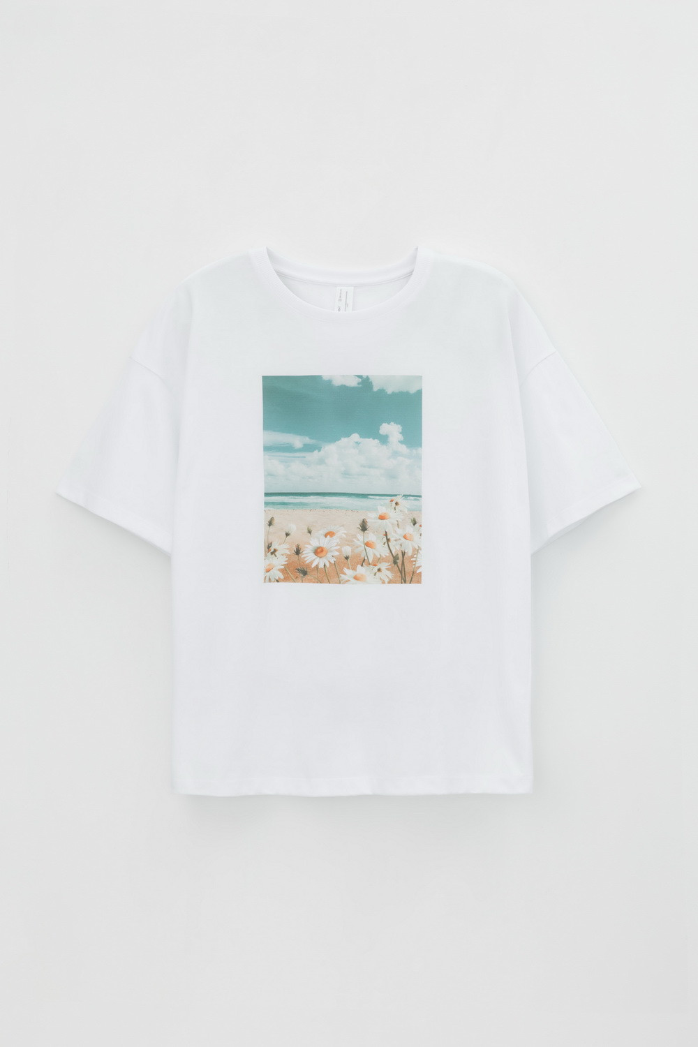 Удлиненная футболка из 100% натурального хлопка. Свободные рукава со спущенной линией плеча создают объём и свободный силуэт. Принт изготовлен из стойких текстильных красителей.