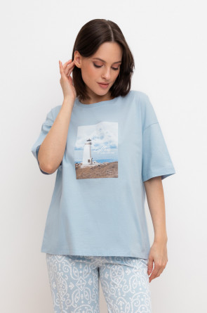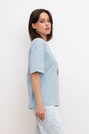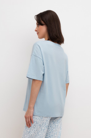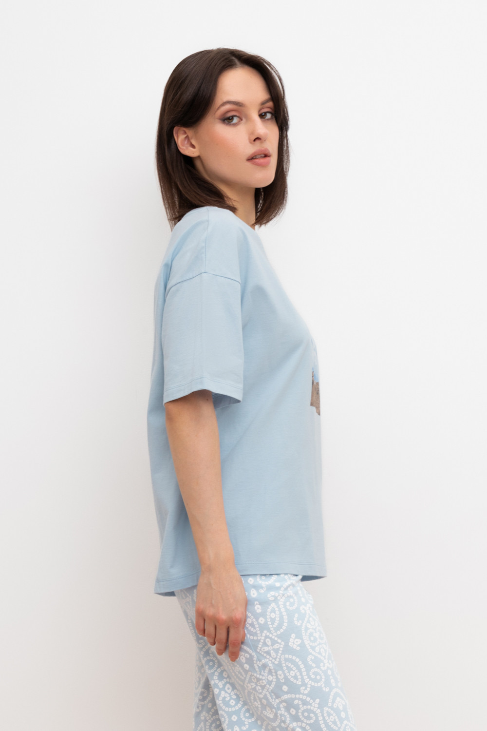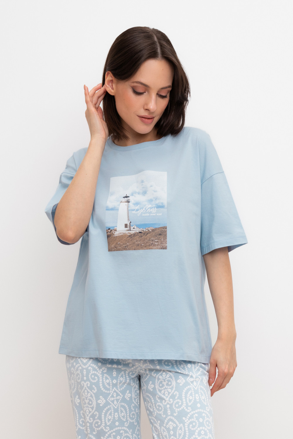 Удлиненная футболка из 100% натурального хлопка. Свободные рукава со спущенной линией плеча создают объём и свободный силуэт. Принт изготовлен из стойких текстильных красителей.