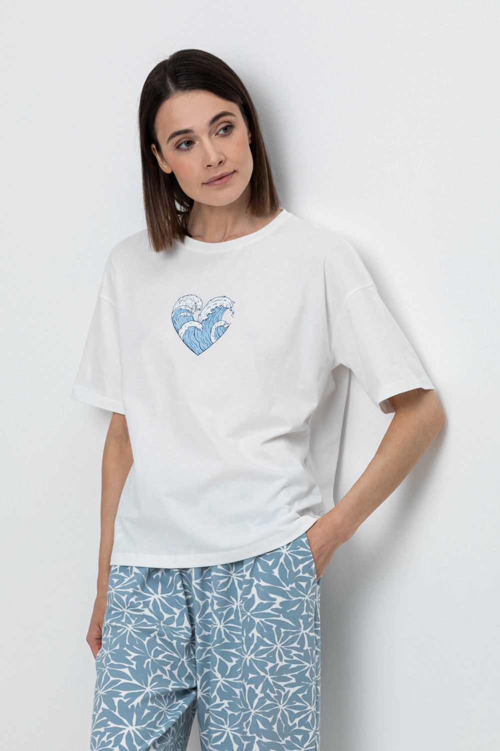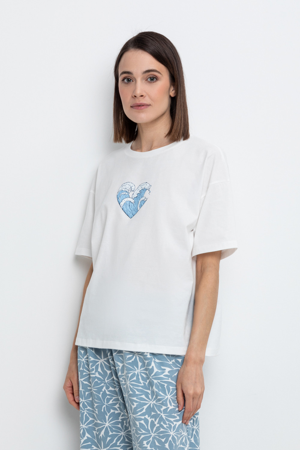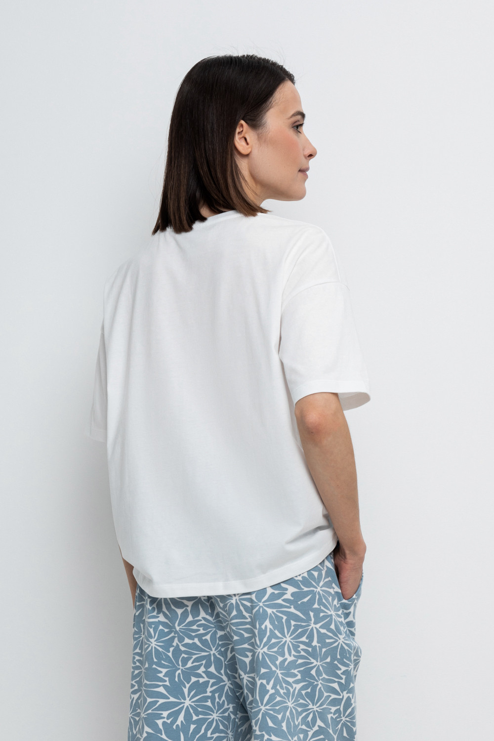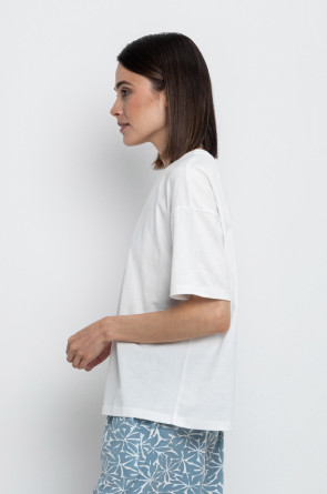 Удлиненная футболка из 100% натурального хлопка. Свободные рукава со спущенной линией плеча создают объём и свободный силуэт. Принт изготовлен из стойких текстильных красителей.