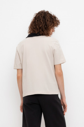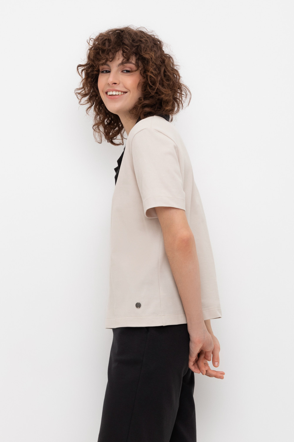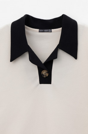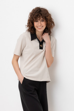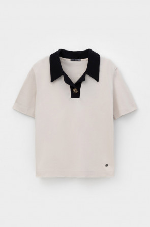 Джемпер поло с короткими рукавами из пике с V-образным вырезом и декоративной пуговицей .