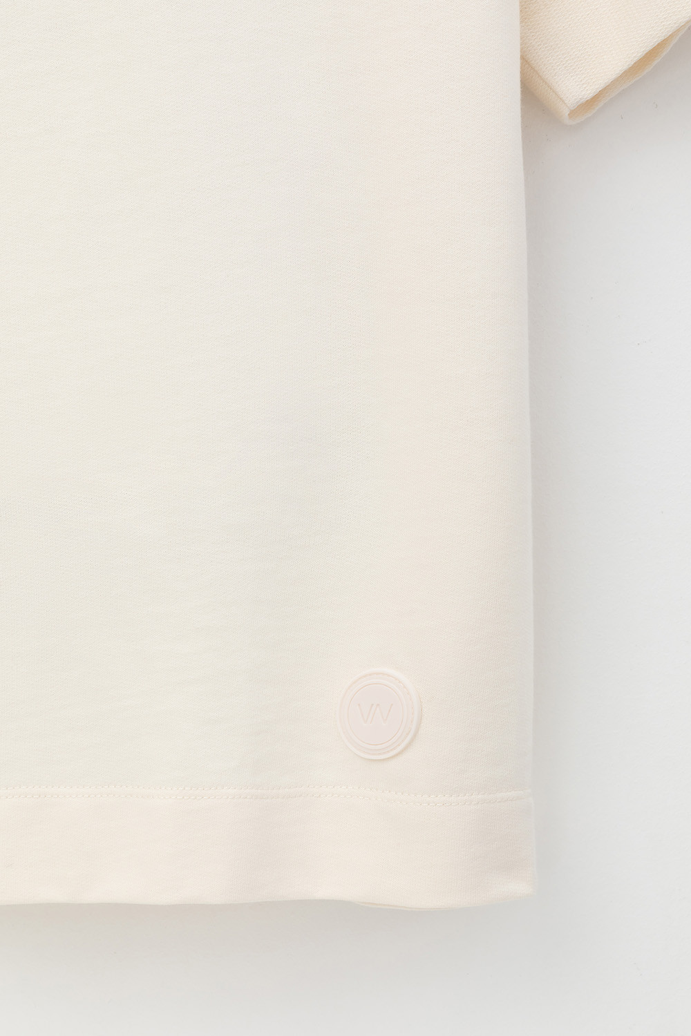 Удлиненная свободная футболка из мягкого футера с рукавами наизнанку.