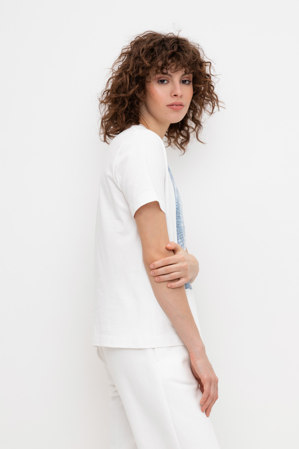 Женская футболка из длинноволокнистого гребенного хлопка с принтом.