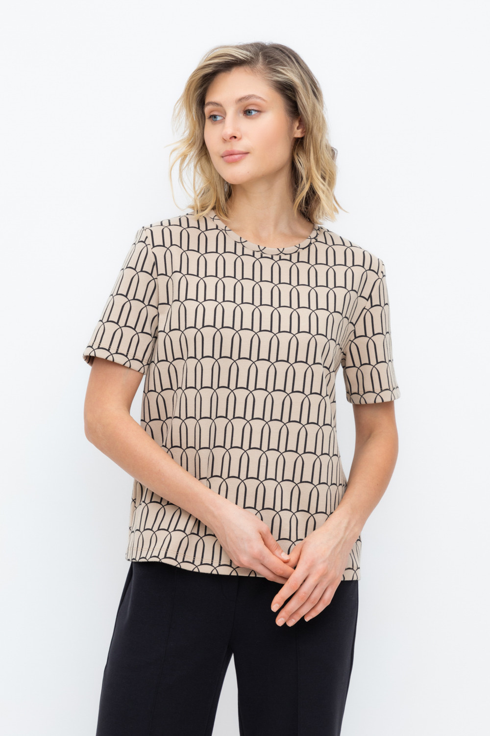 Базовая футболка из плотного набивного трикотажа интерлок.