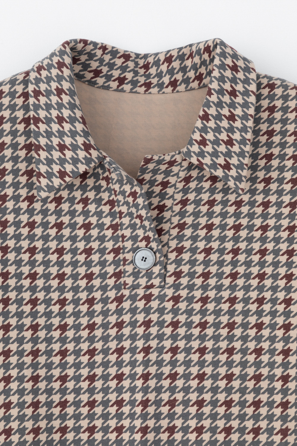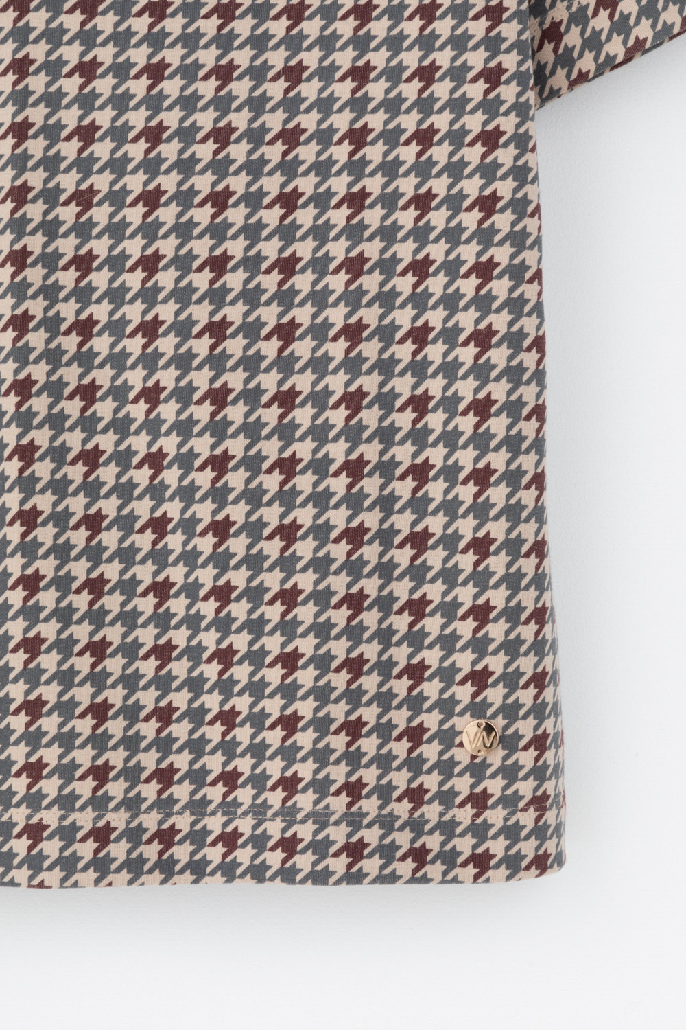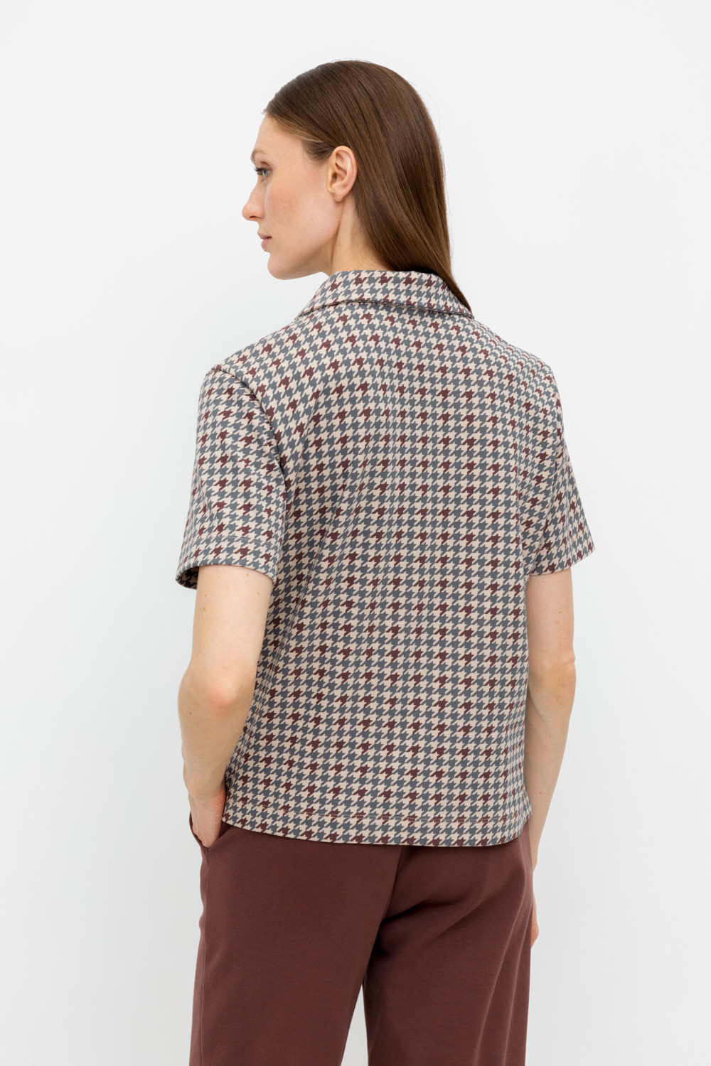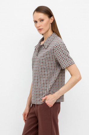 Джемпер поло с короткими рукавами из интерлока с V-образным вырезом и декоративной пуговицей.