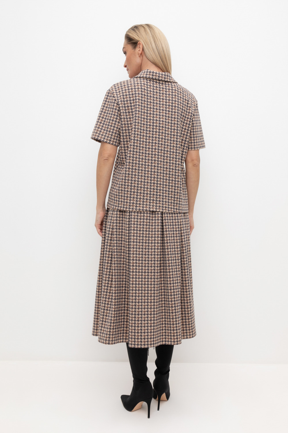 Джемпер поло с короткими рукавами из интерлока с V-образным вырезом и декоративной пуговицей.