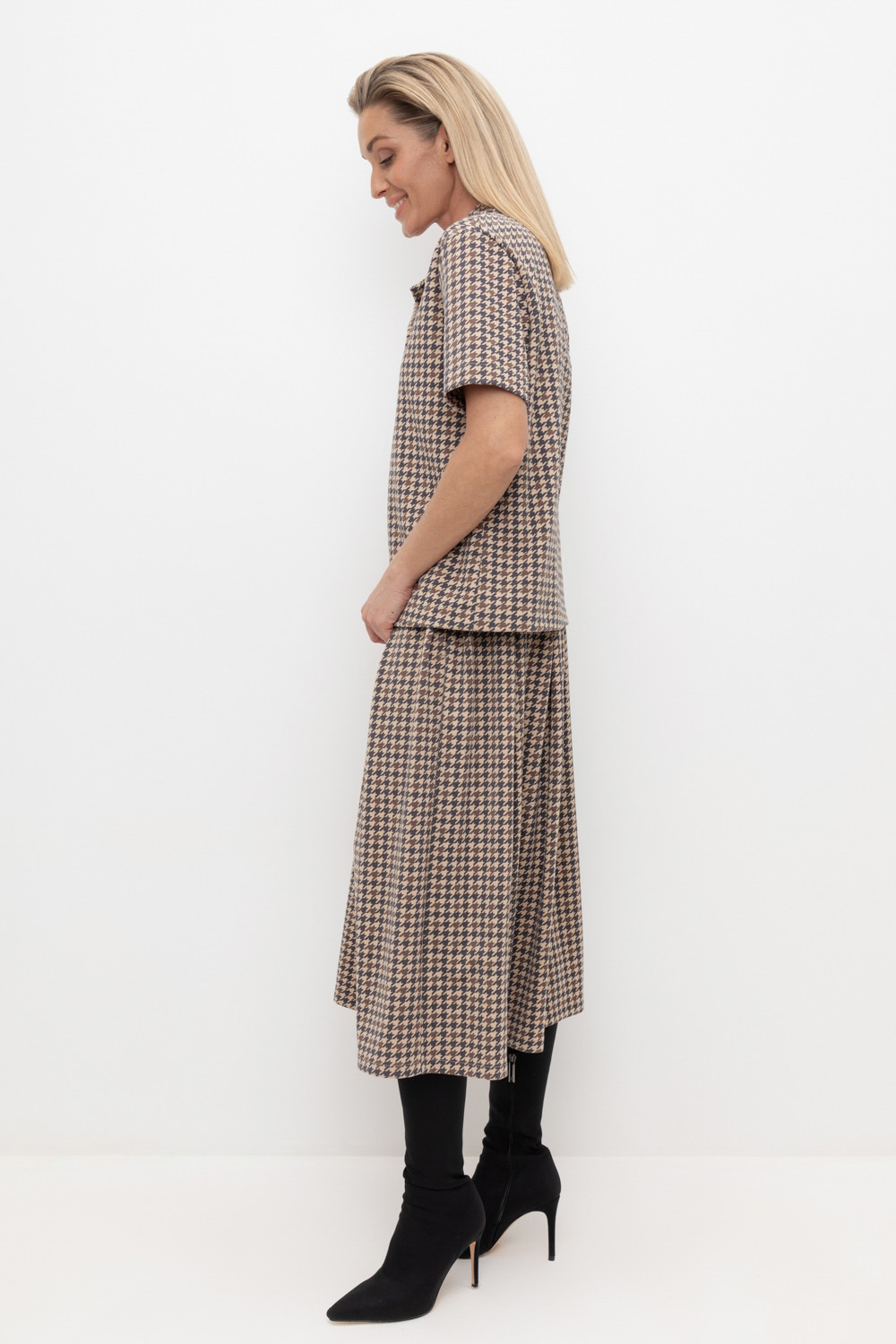 Джемпер поло с короткими рукавами из интерлока с V-образным вырезом и декоративной пуговицей.