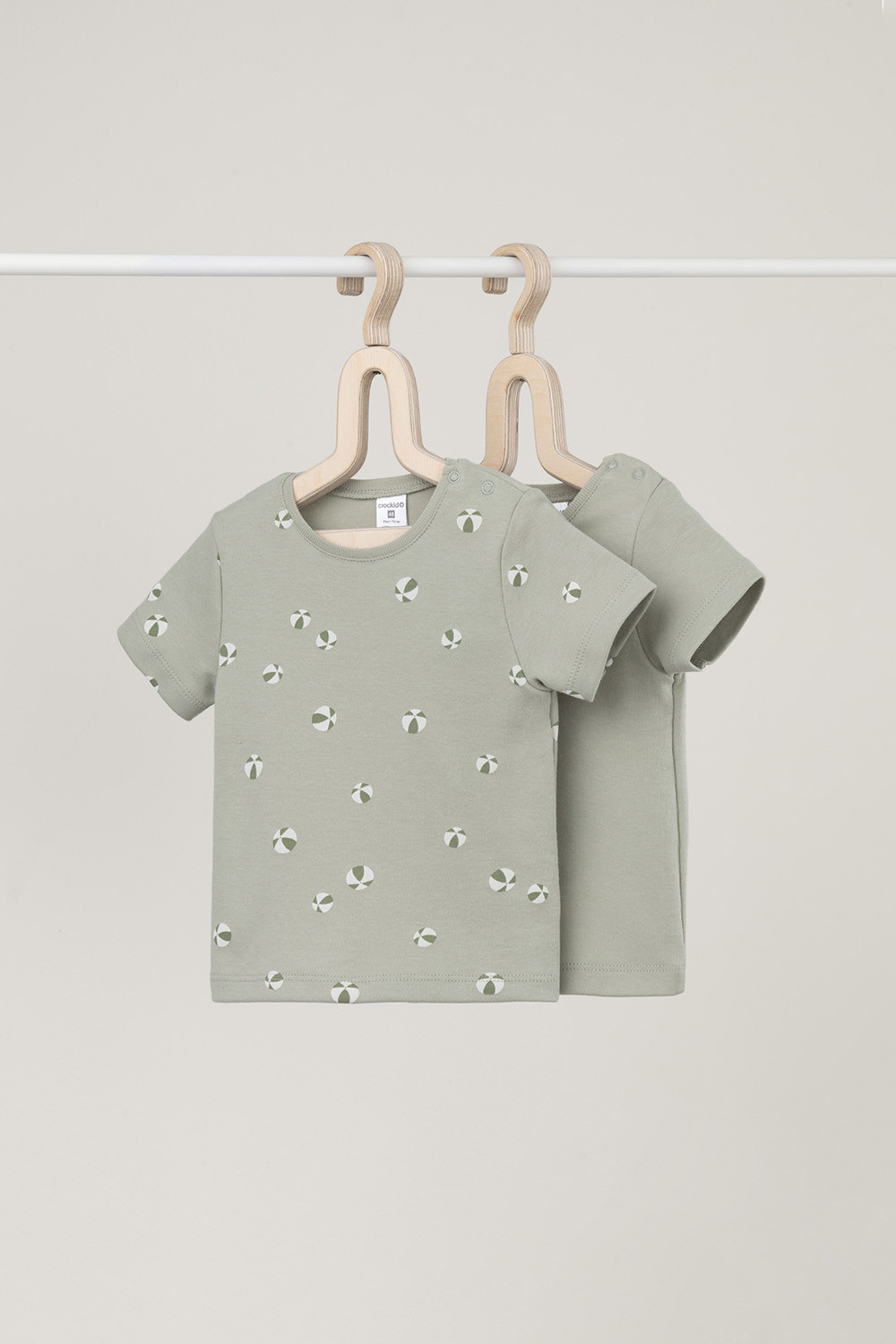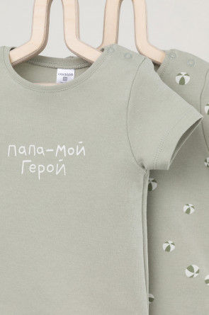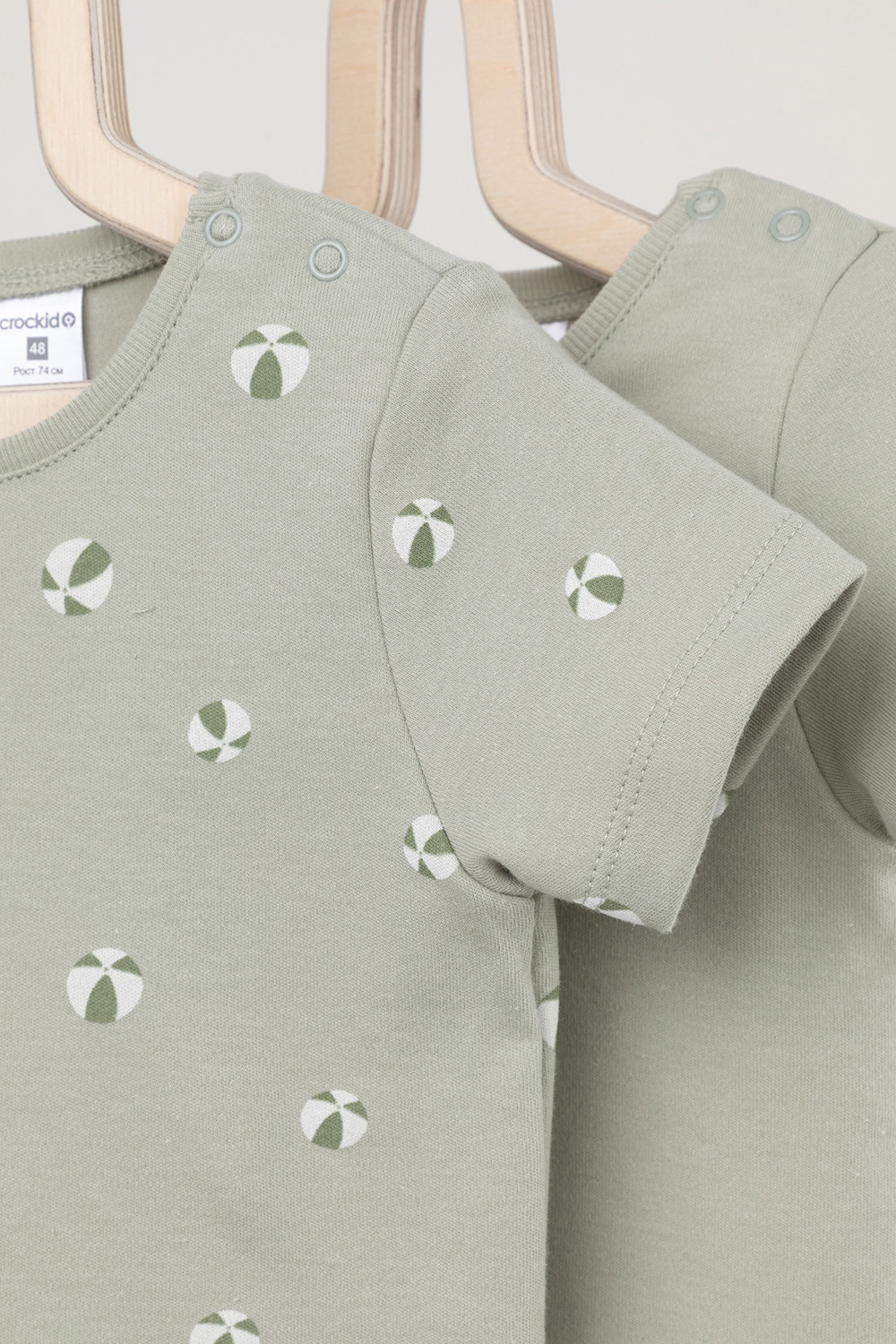 Футболки для мальчика в упаковке 2 шт из высококачественного трикотажного полотна. Оригинальная набивка выполнена из стойких гипоаллергенных текстильных красителей. Для удобства на плече застежка на кнопки.