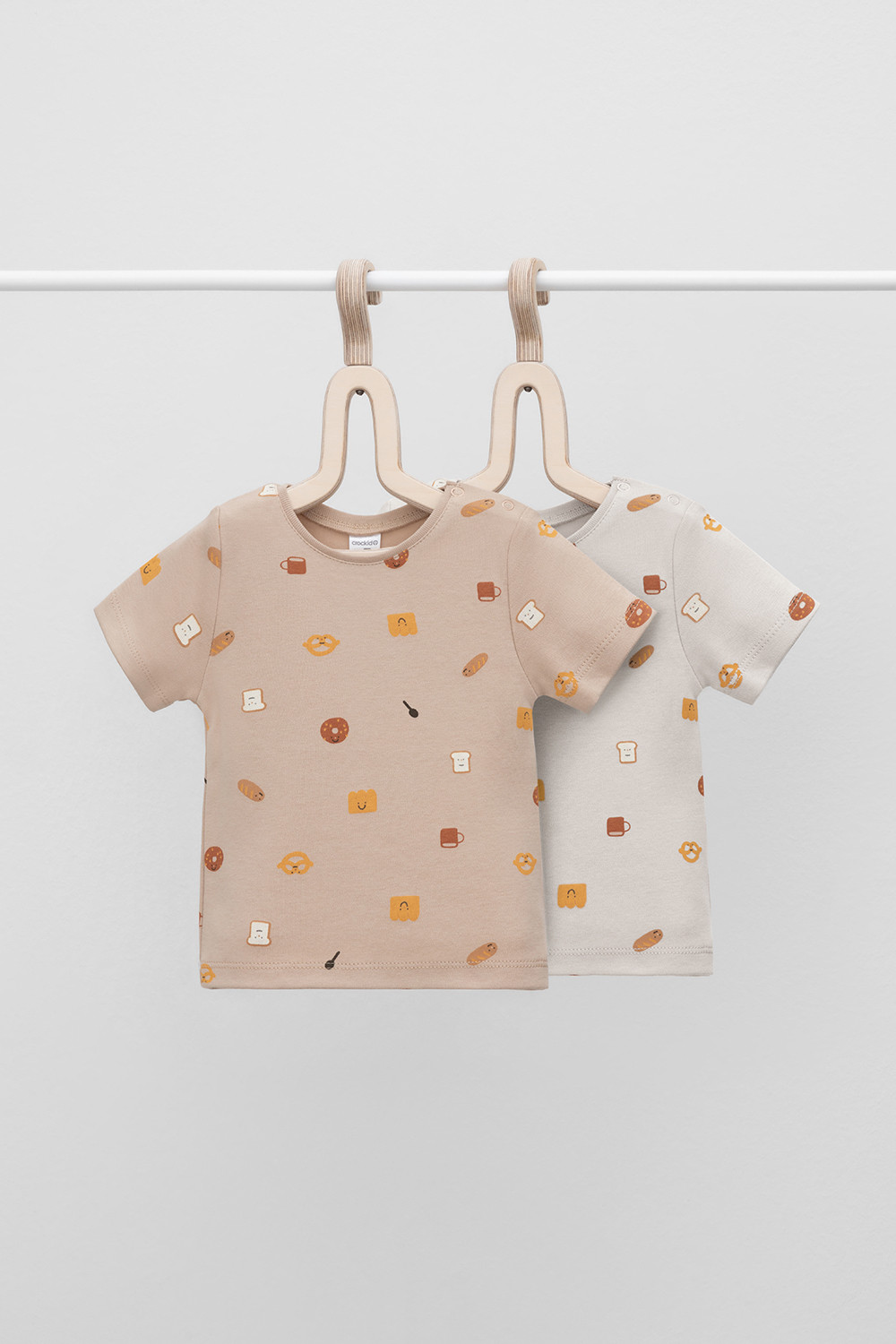 Футболки для мальчика в упаковке 2 шт из высококачественного трикотажного полотна. Оригинальная набивка выполнена из стойких гипоаллергенных текстильных красителей. Для удобства на плече застежка на кнопки.