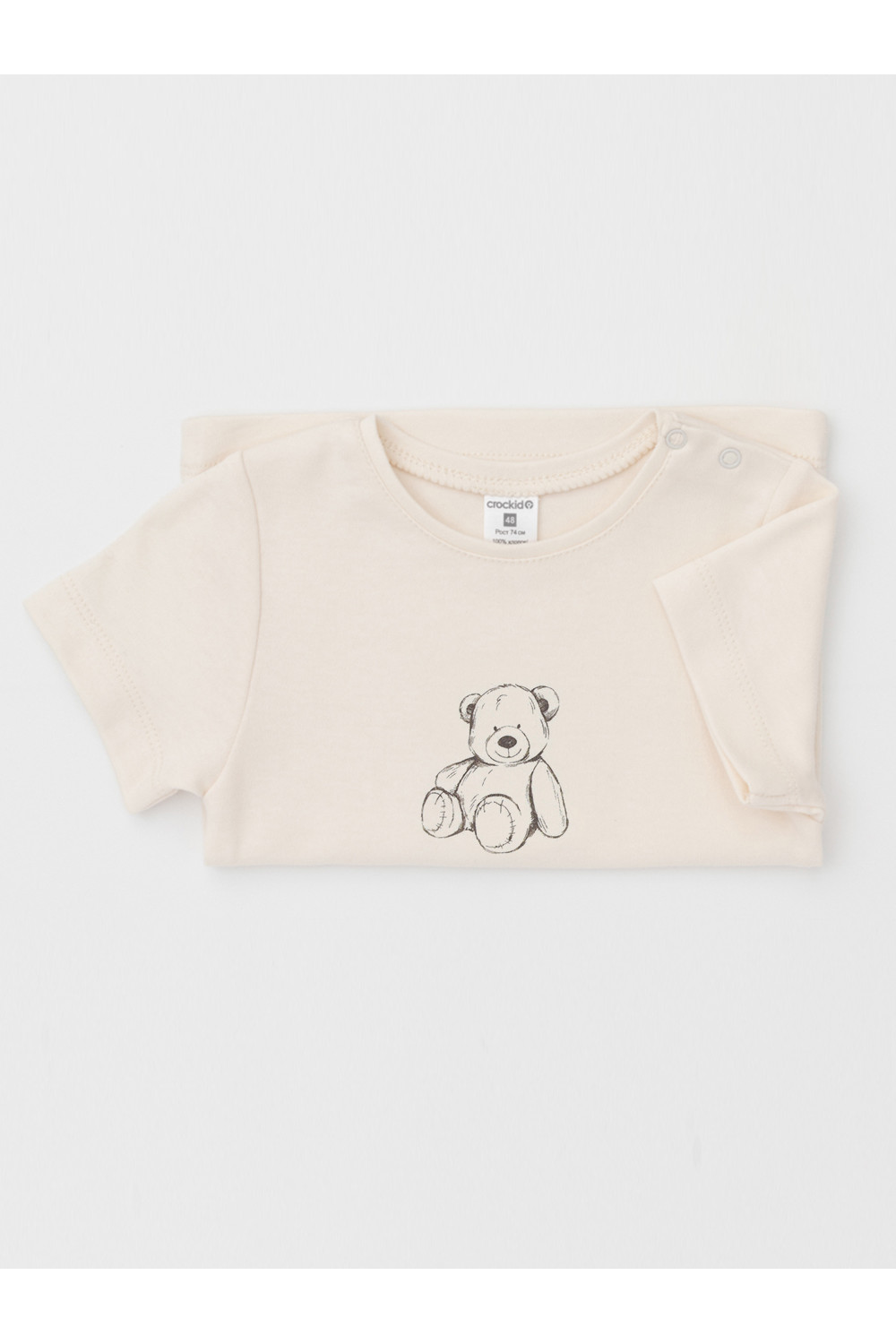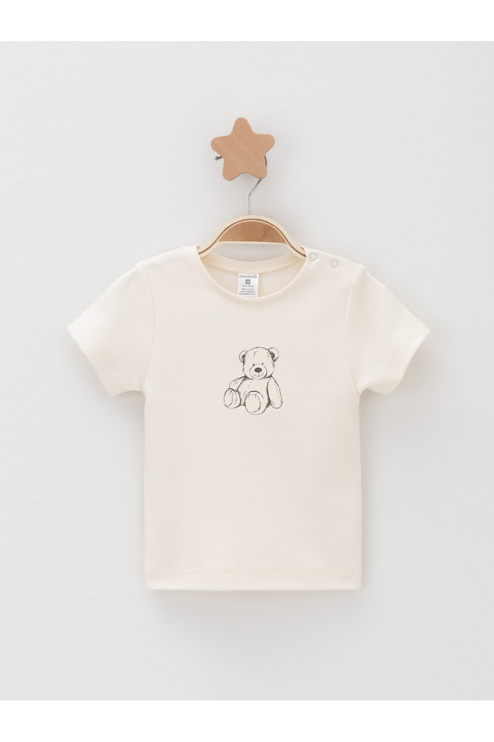 Футболка для новорождённых из высококачественного трикотажного полотна. Оригинальный принт выполнен из стойких гипоаллергенных текстильных красителей. Для удобства на плече застежка на кнопки