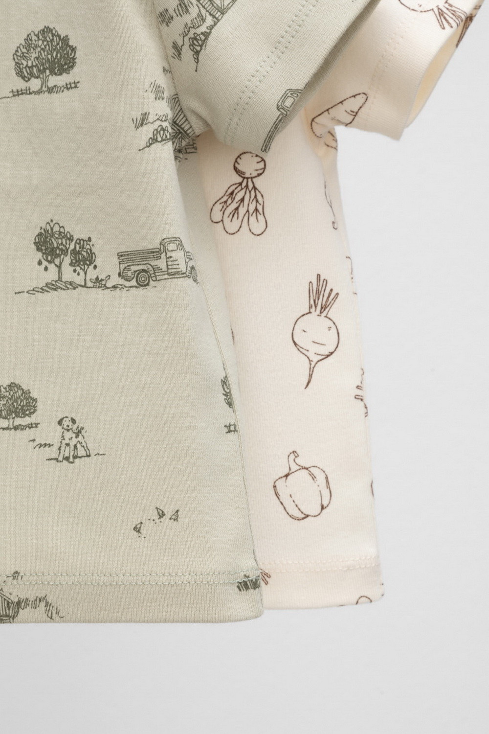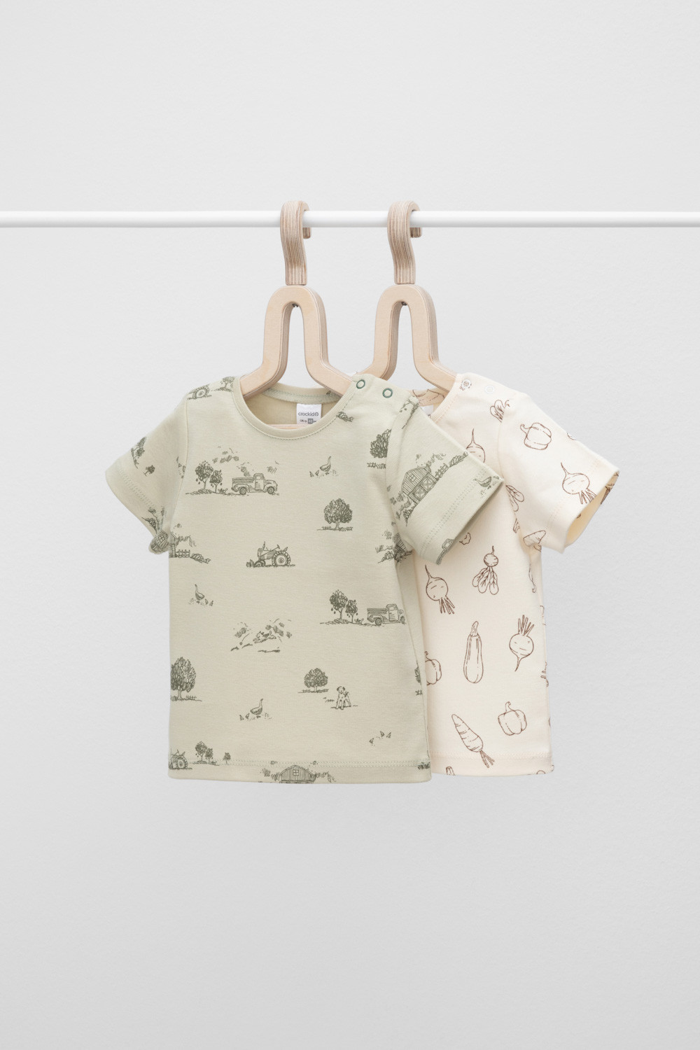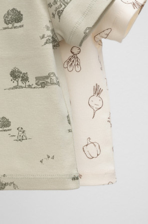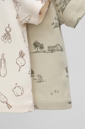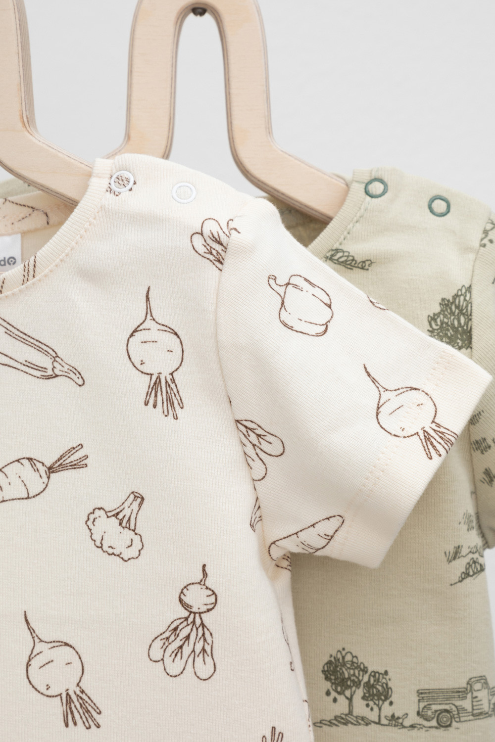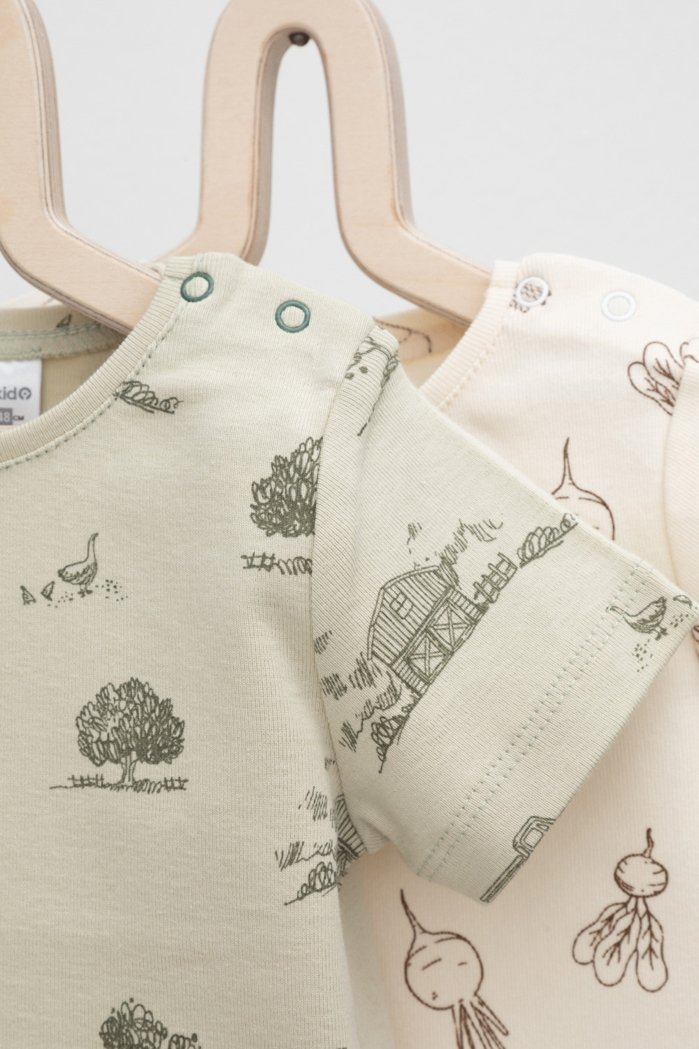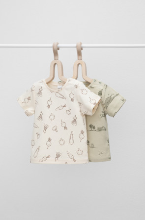 Футболки для мальчика в упаковке 2 шт из высококачественного трикотажного полотна. Оригинальные набивки выполнены из стойких, гипоаллергенных текстильных красителей. Для удобства на плече застежка на кнопки.