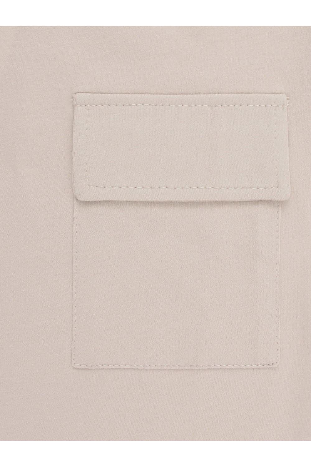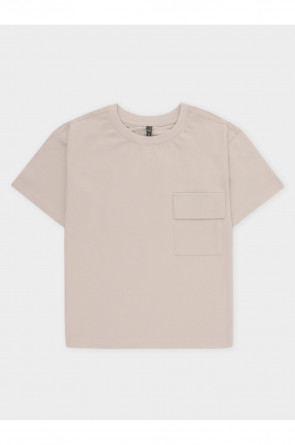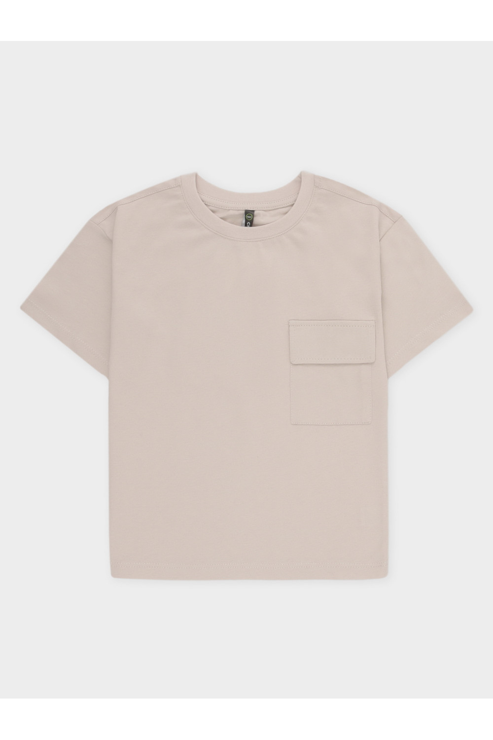 Однотонная футболка для мальчика из высококачественного трикотажного полотна. Спереди карман с клапаном. Для удобства в размерах 92-98 имеется застежка на спинке на кнопки.