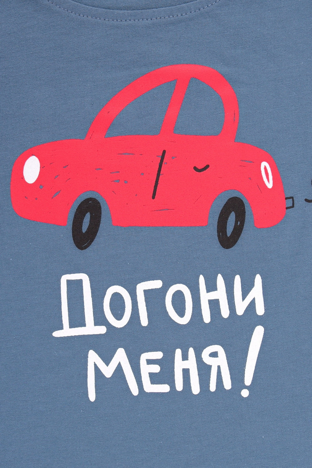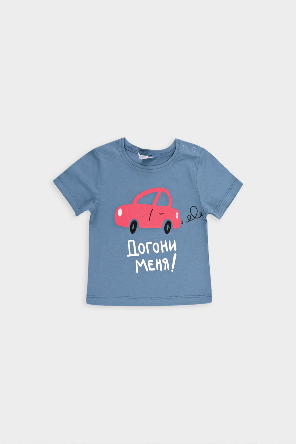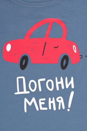 Футболка из натурального хлопка для мальчика. Сшита из лёгкого трикотажа супрем и украшена принтом с изображением машинки. Застёгивается на кнопки в области плеча. Рукава и низ изделия обработаны плоскими швами.
