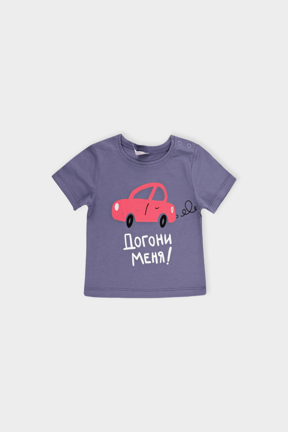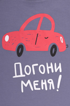 Футболка из натурального хлопка для мальчика. Сшита из лёгкого трикотажа супрем и украшена принтом с изображением машинки. Застёгивается на кнопки в области плеча. Рукава и низ изделия обработаны плоскими швами.